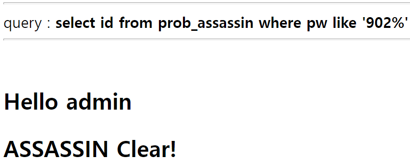 결국 해당 코드는 admin과 guest의 pw가 달라지는 지점의 admin의 앞자리를 출력하게 된다.