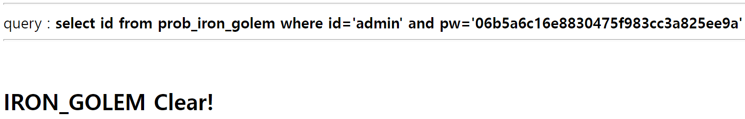 [Lord of SQL Injection] 21번 iron_golem 풀이 본문