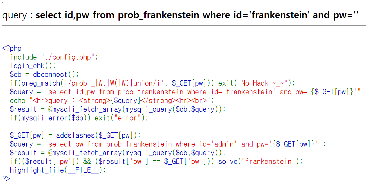 [Lord of SQL Injection] 28번 frankenstein 풀이 본문