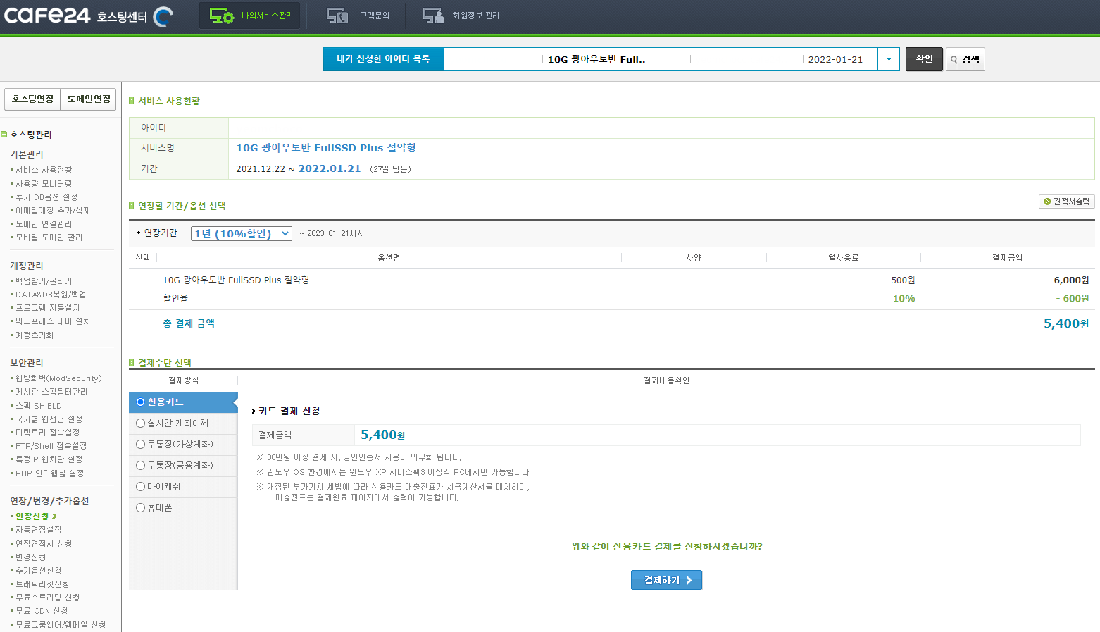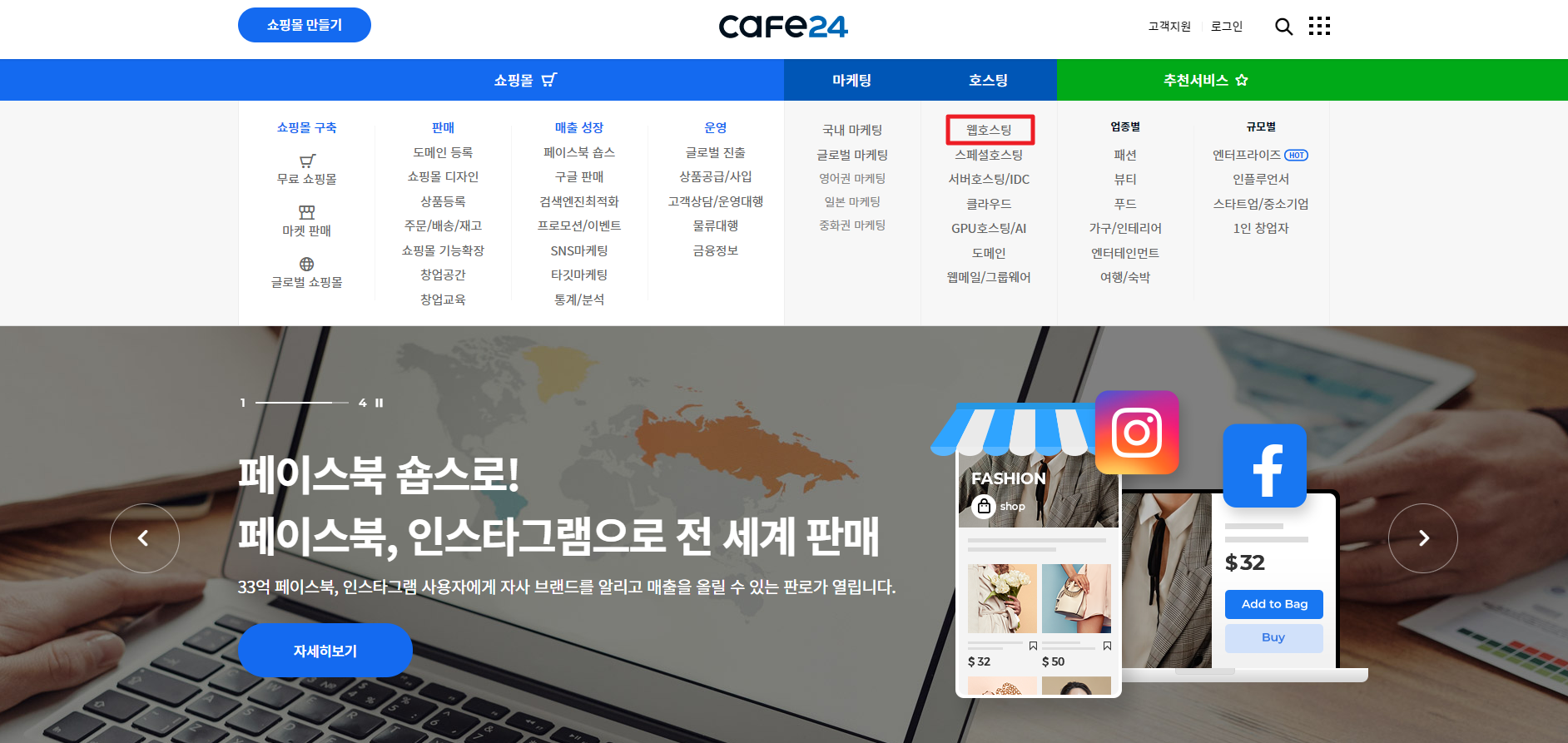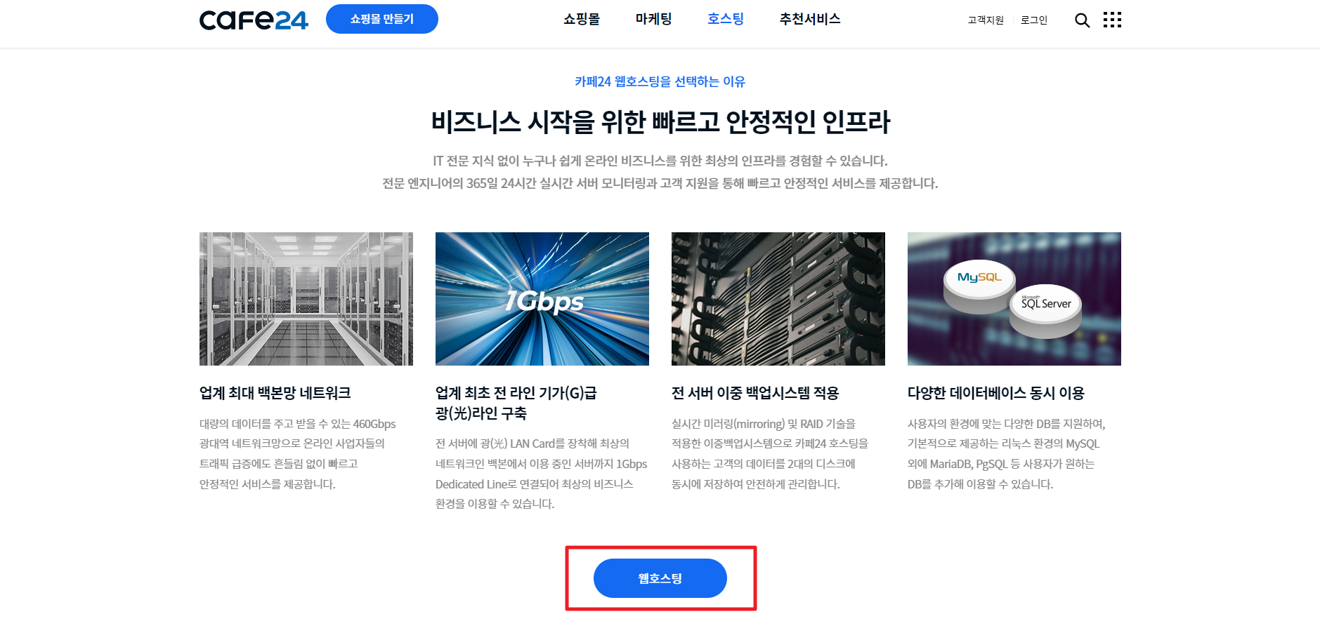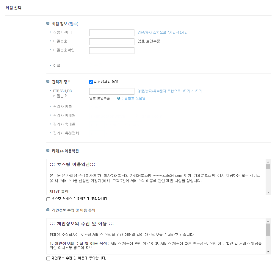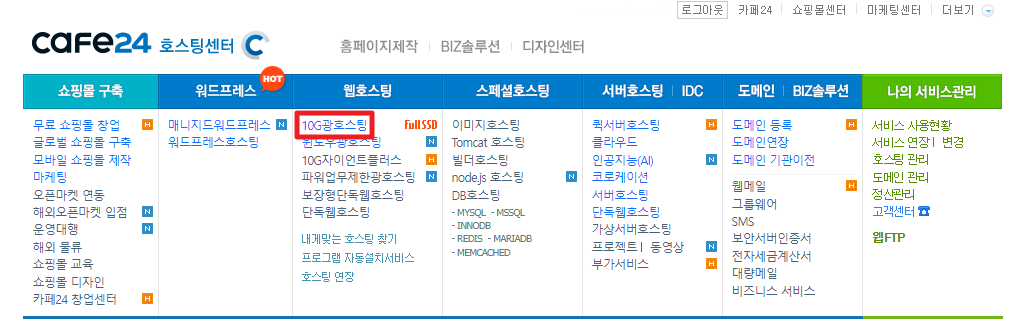 카페24를 예시로 웹 호스팅 신청 과정을 정리해보겠다.