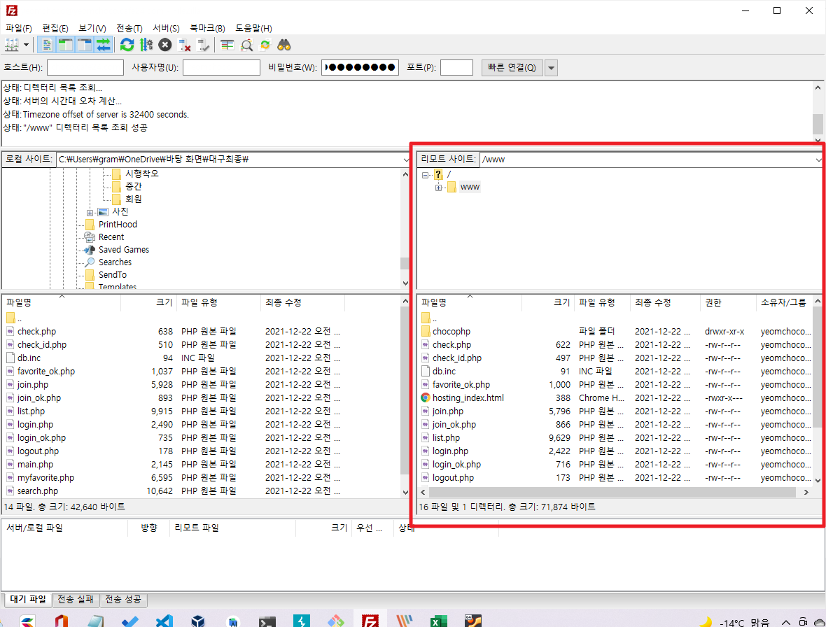 [4] 이제 로컬 쪽에서 내 웹 파일들을 찾아서 리모트 쪽으로 드래그 해주면 끝이다.