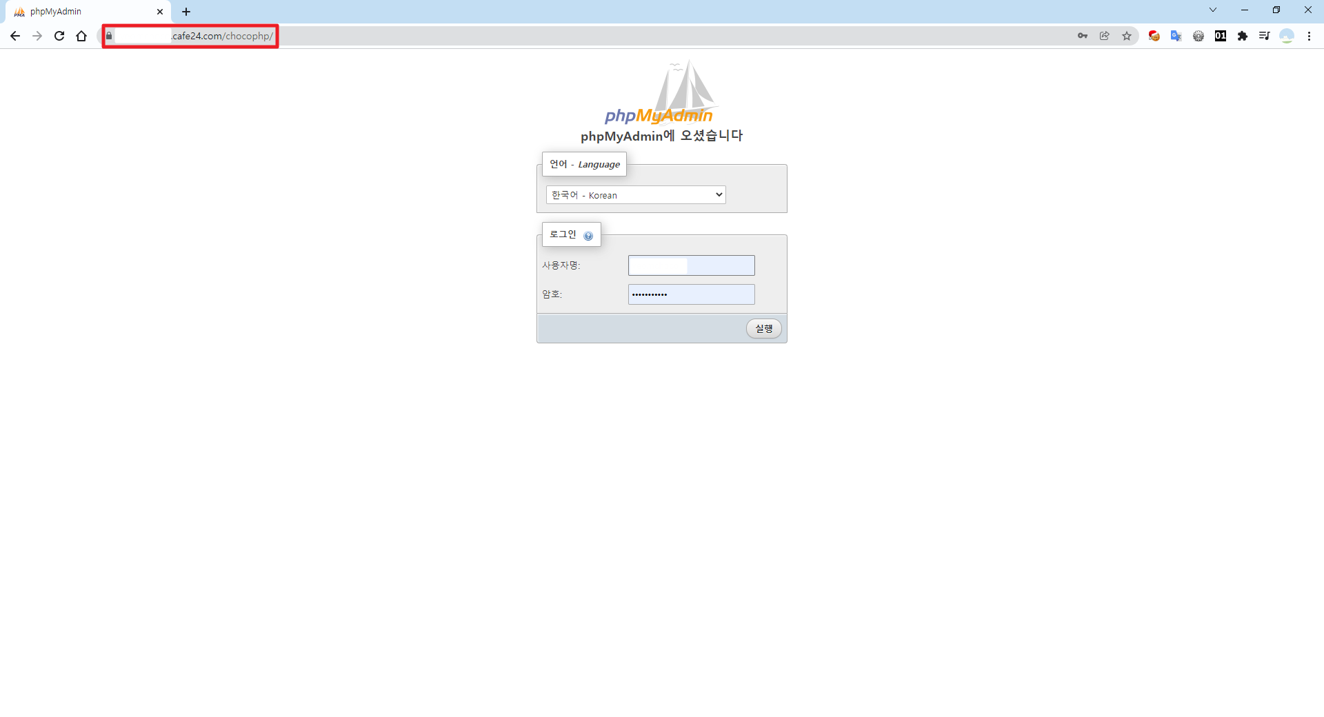 [5] 이제 주소창에 www.[도메인주소]/[파일명]을 입력하면 PhpMyAdmin에 접근할 수 있다!