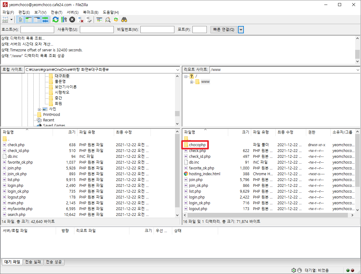 [4] FileZilla를 사용해서 해당 파일을 웹 서버에 업로드한다.