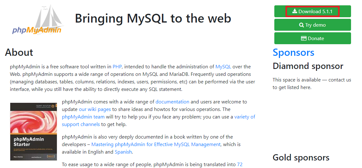 [1] PhpMyAdmin을 다운받는다. → https://www.phpmyadmin.net/