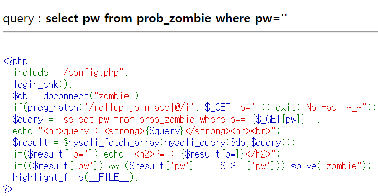 [Lord of SQL Injection] 31번 zombie 풀이 본문