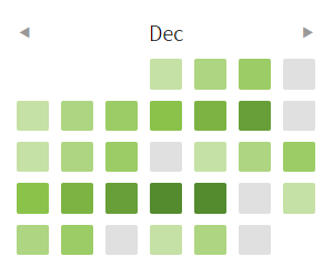 셀의 기본 색상은 회색이며, 포스팅을 올리면 해당 날짜의 셀이 녹색으로 변한다.