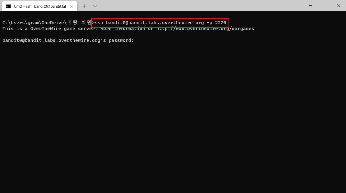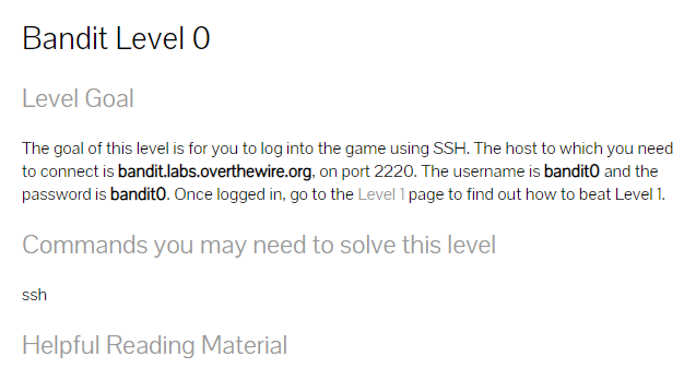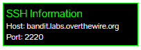$ ssh bandit0@bandit.labs.overthewire.org -p 2220