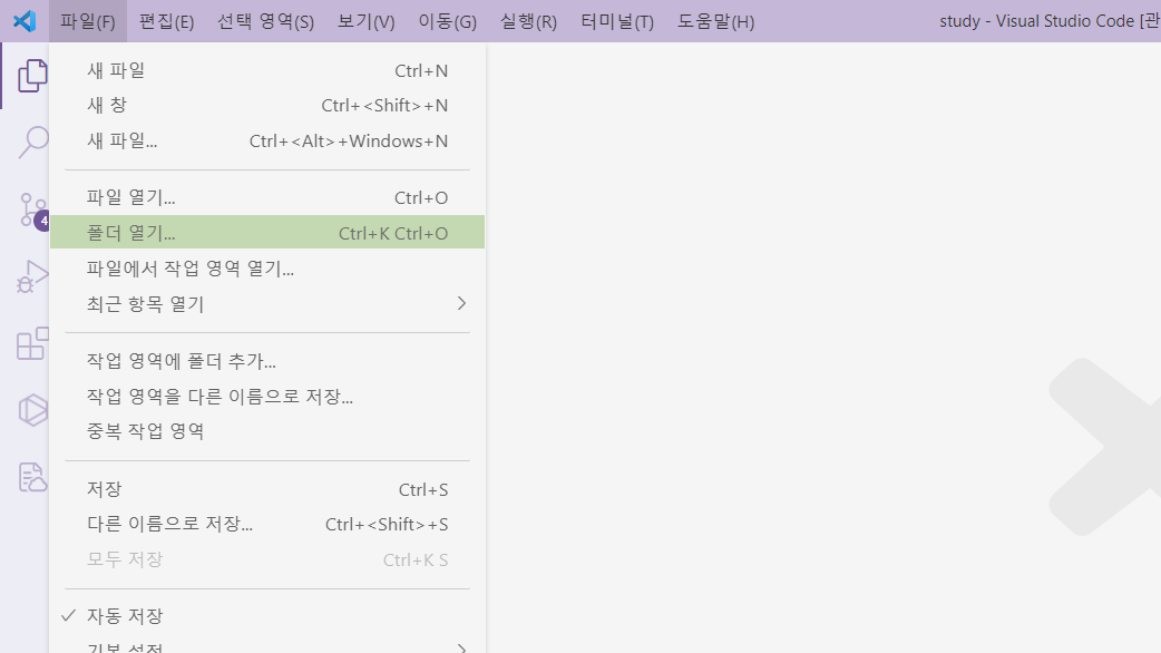 [2] 적당히 폴더를 하나 생성한 후 VSCode 상에서 열어준다.