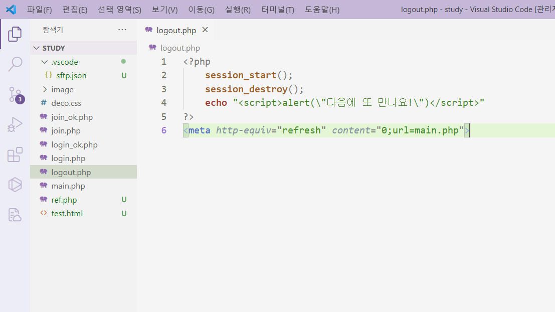 [1] 환경 설정 시 sftp.json 에서 uploadOnSave를 On으로 설정했다면 로컬에서 저장할 때마다 서버에 내용이 동기화된다.