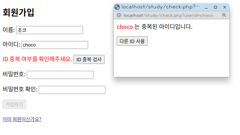 [웹개발] 아이디 중복 검사 본문