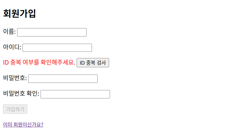 회원가입 시 아이디 중복 검사