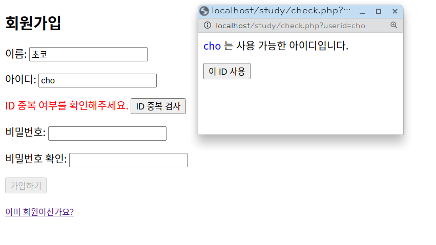[웹개발] 아이디 중복 검사 본문