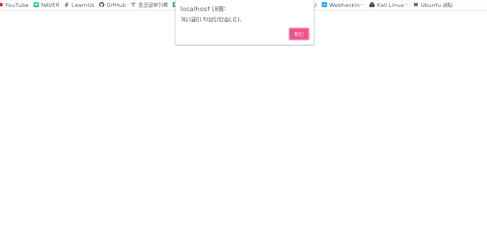 [5] 쿼리문 실행이 성공하면 게시글 작성 alert를 출력하고, 게시판 페이지*로 돌아가준다.