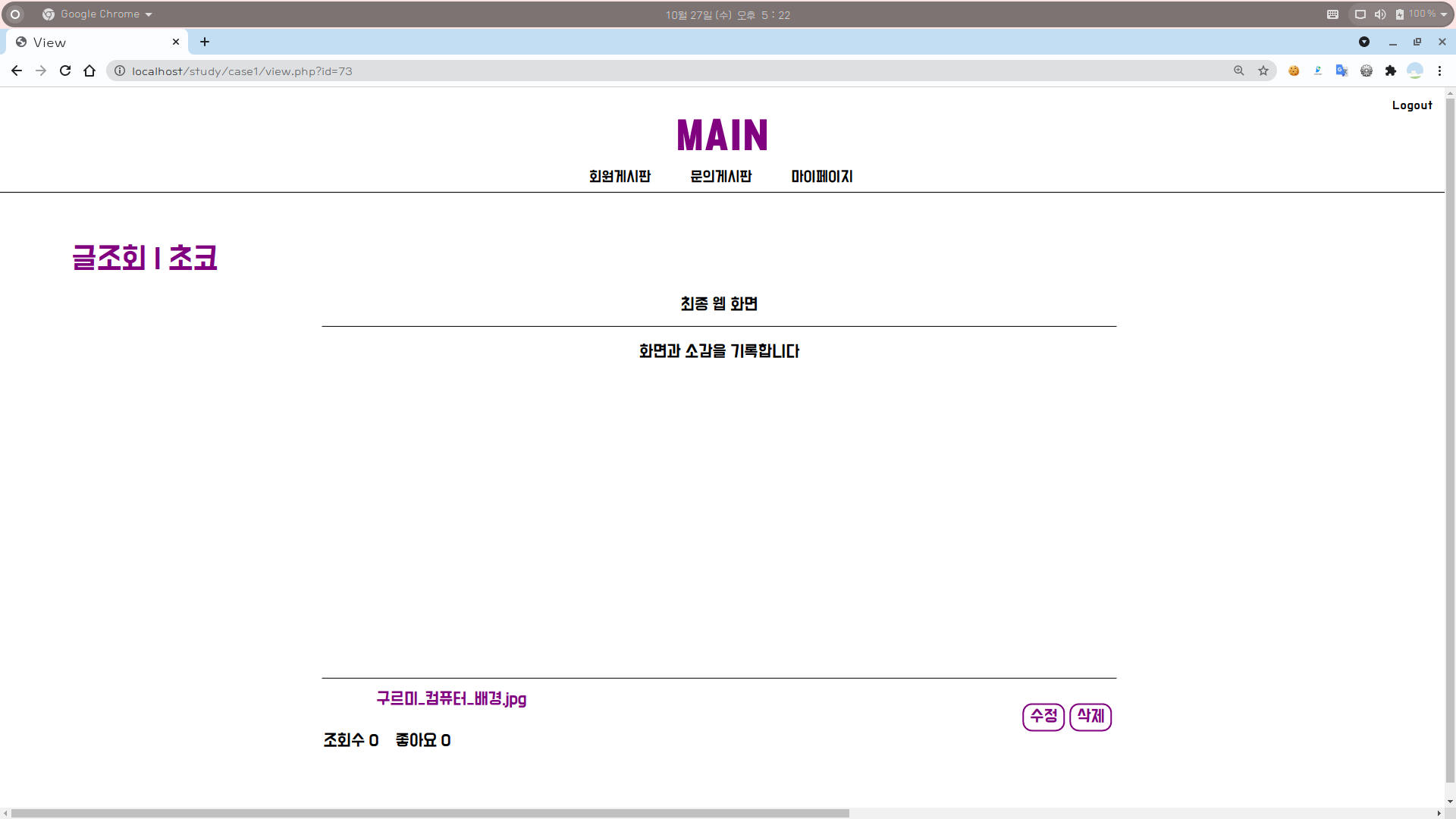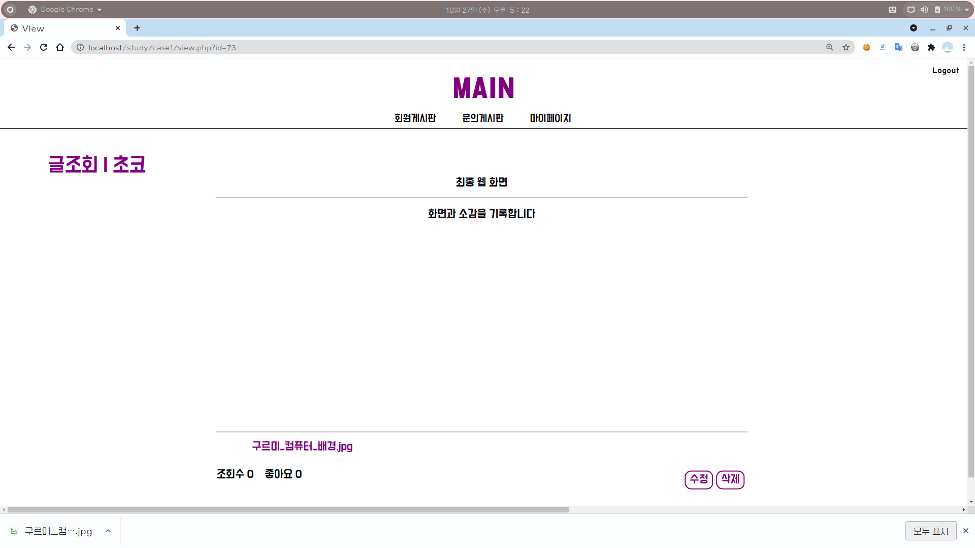 2-2. 회원게시판 화면 : 글조회