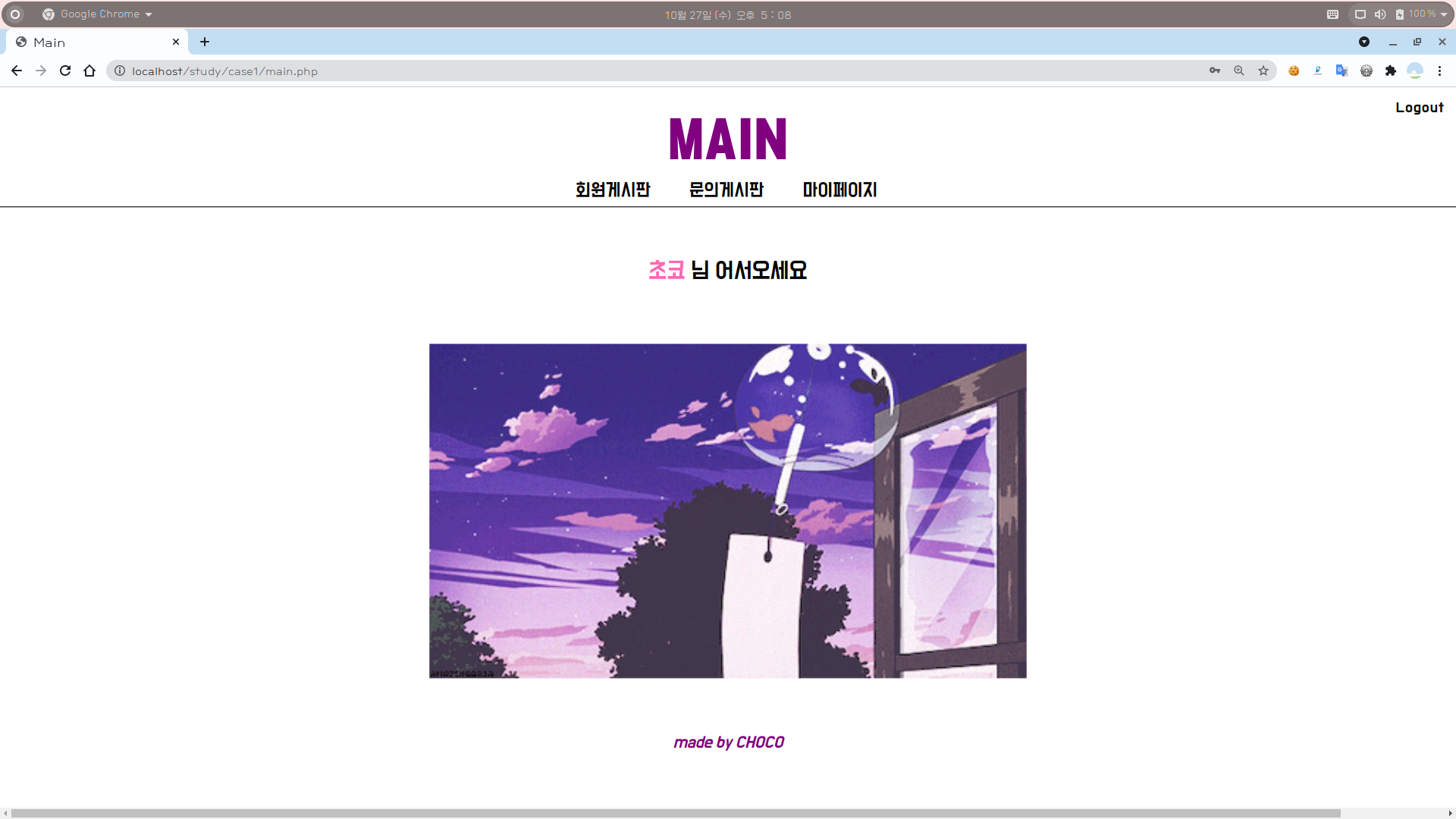 [2-1] 로그인 상태일 때는 최상단의 맨 우측에 [Logout] 버튼이 나타난다.