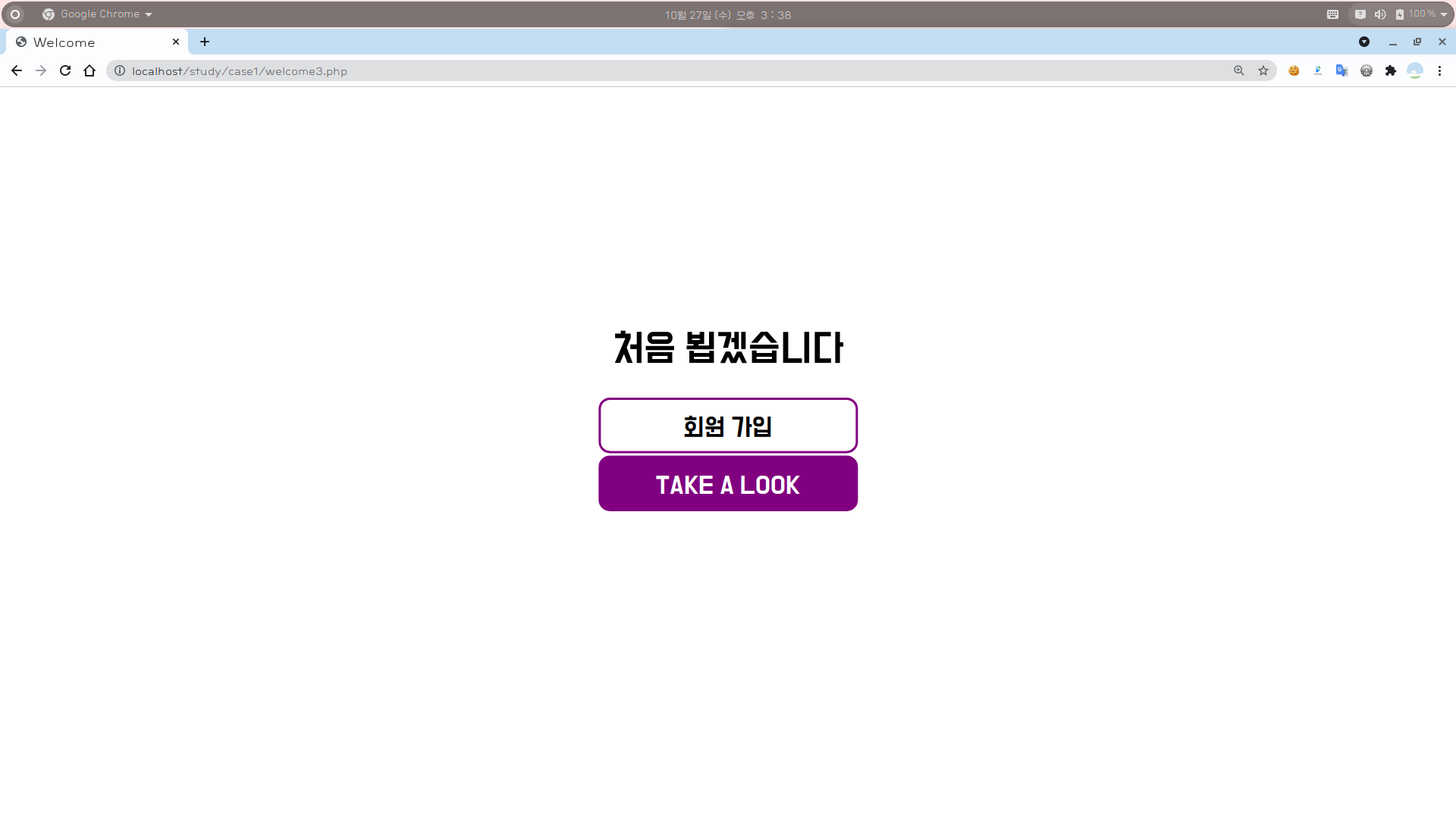 [2] [처음 오셨나요?] 버튼을 클릭하면 웰컴 화면 (3) 으로 넘어간다.