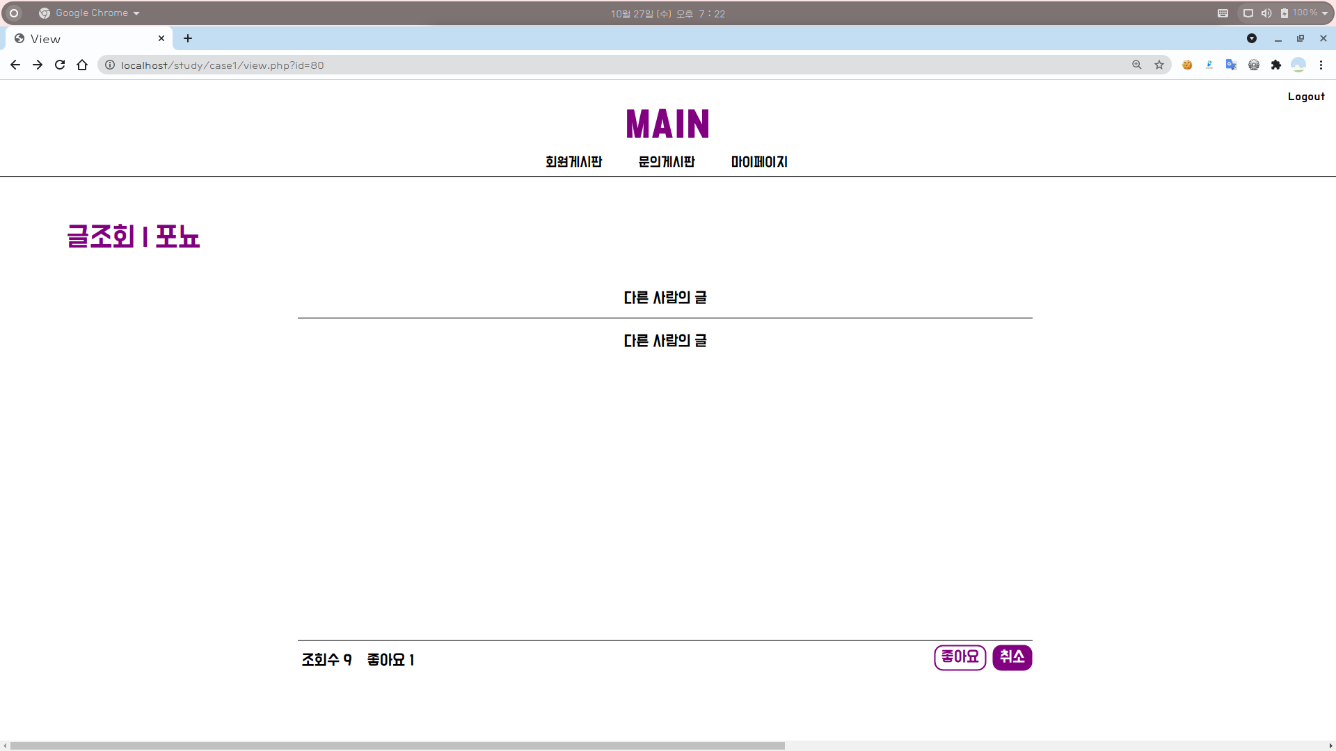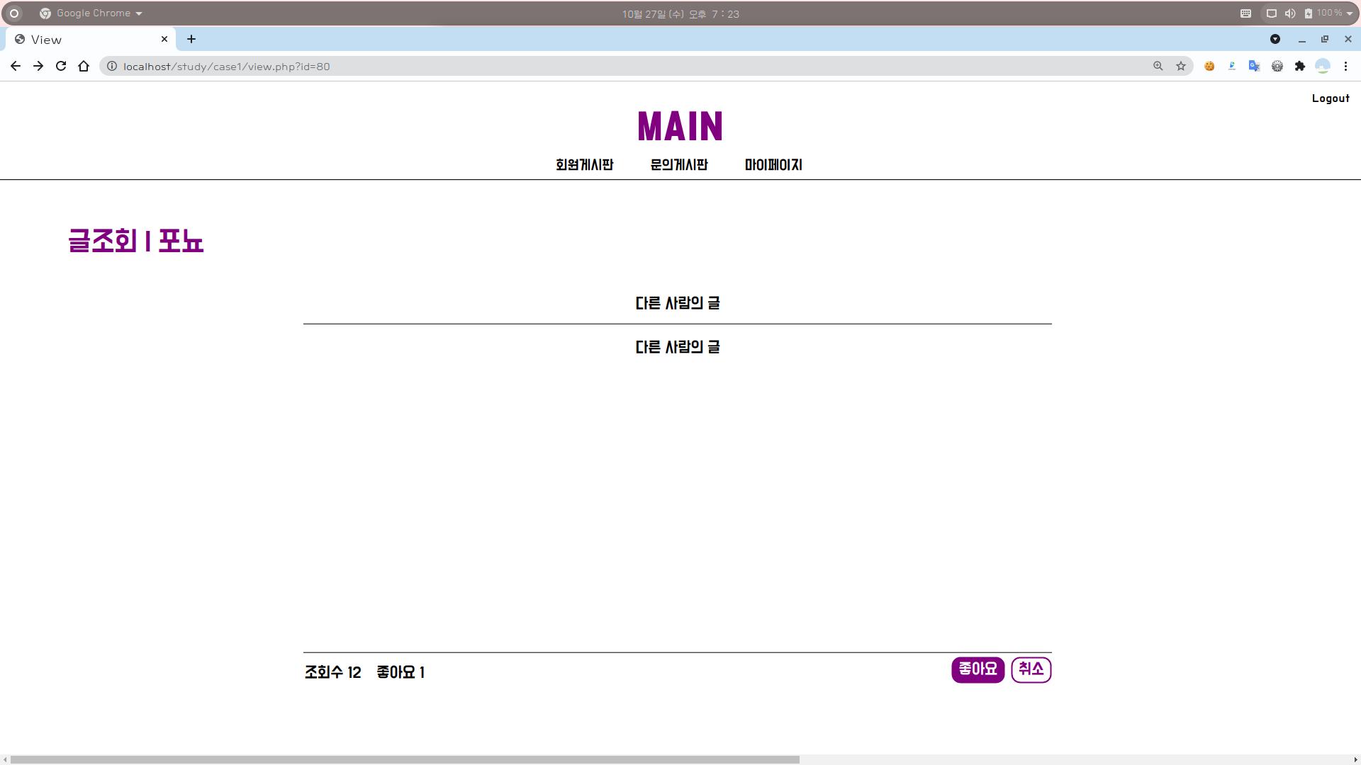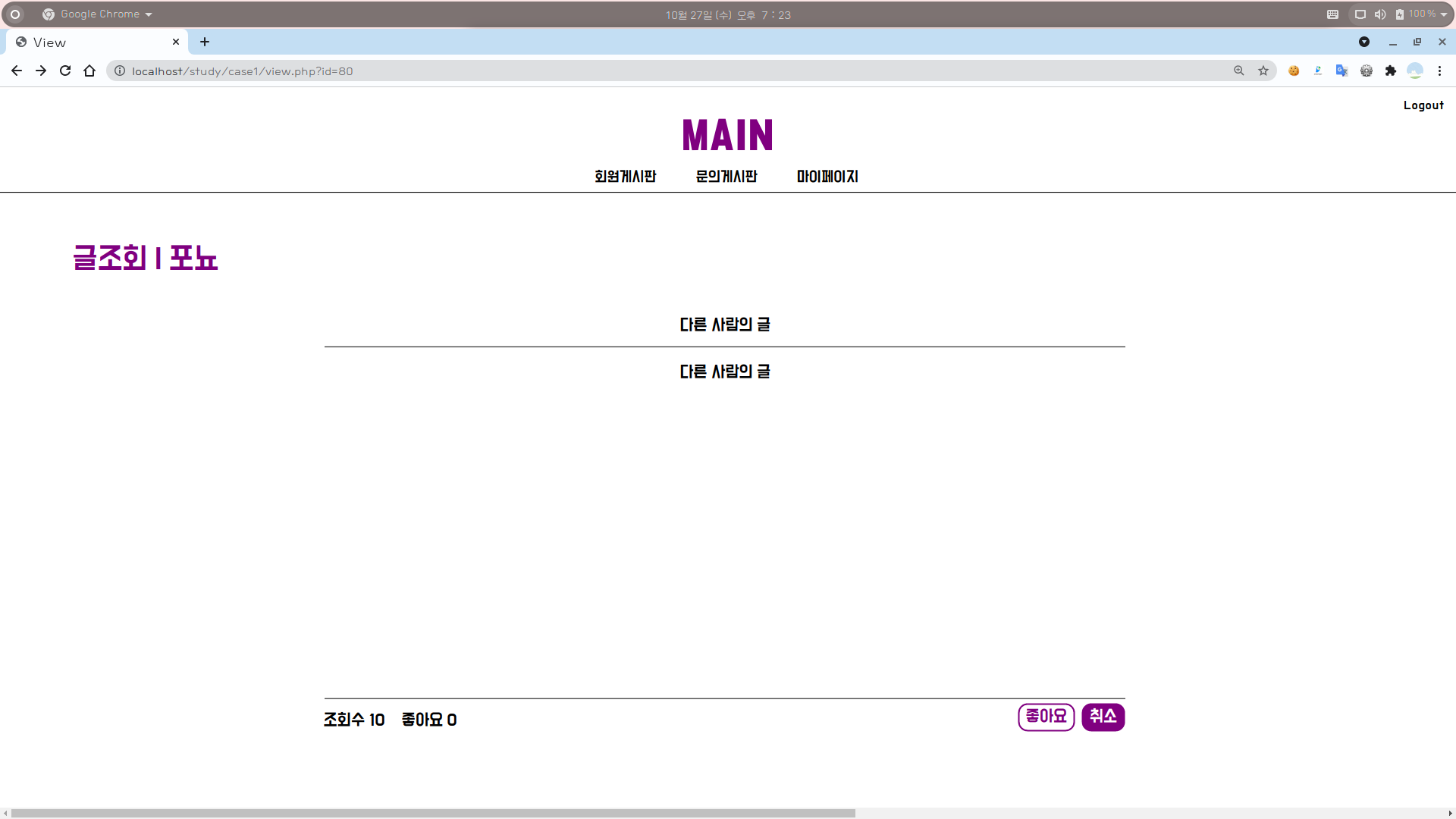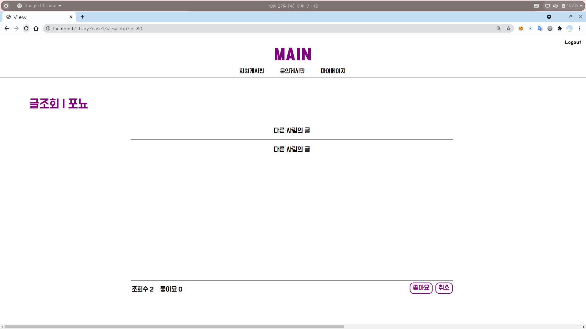 2-2. 조회수 : 다른 사람의 글인 경우