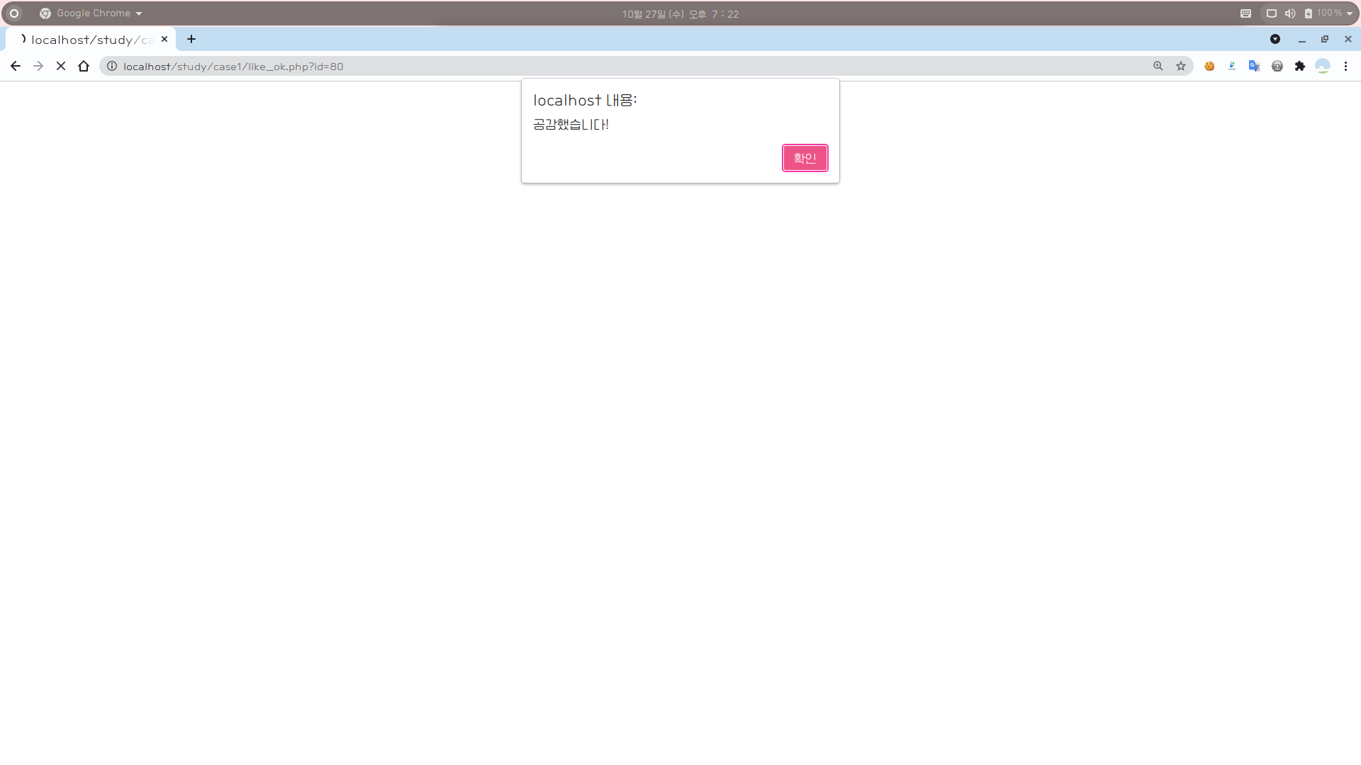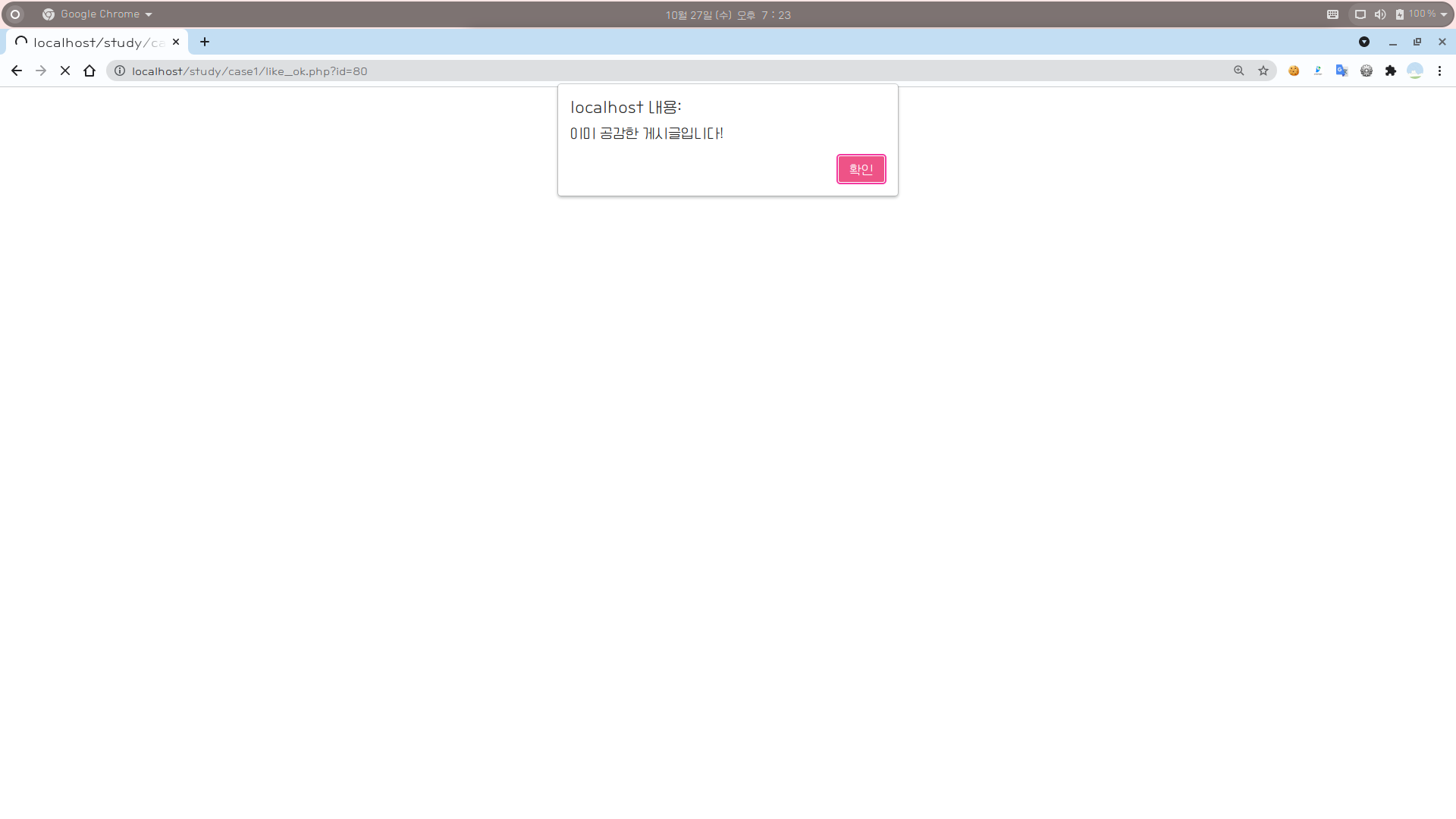 [1] 이미 좋아요한 게시글이라는 alert가 출력된다.