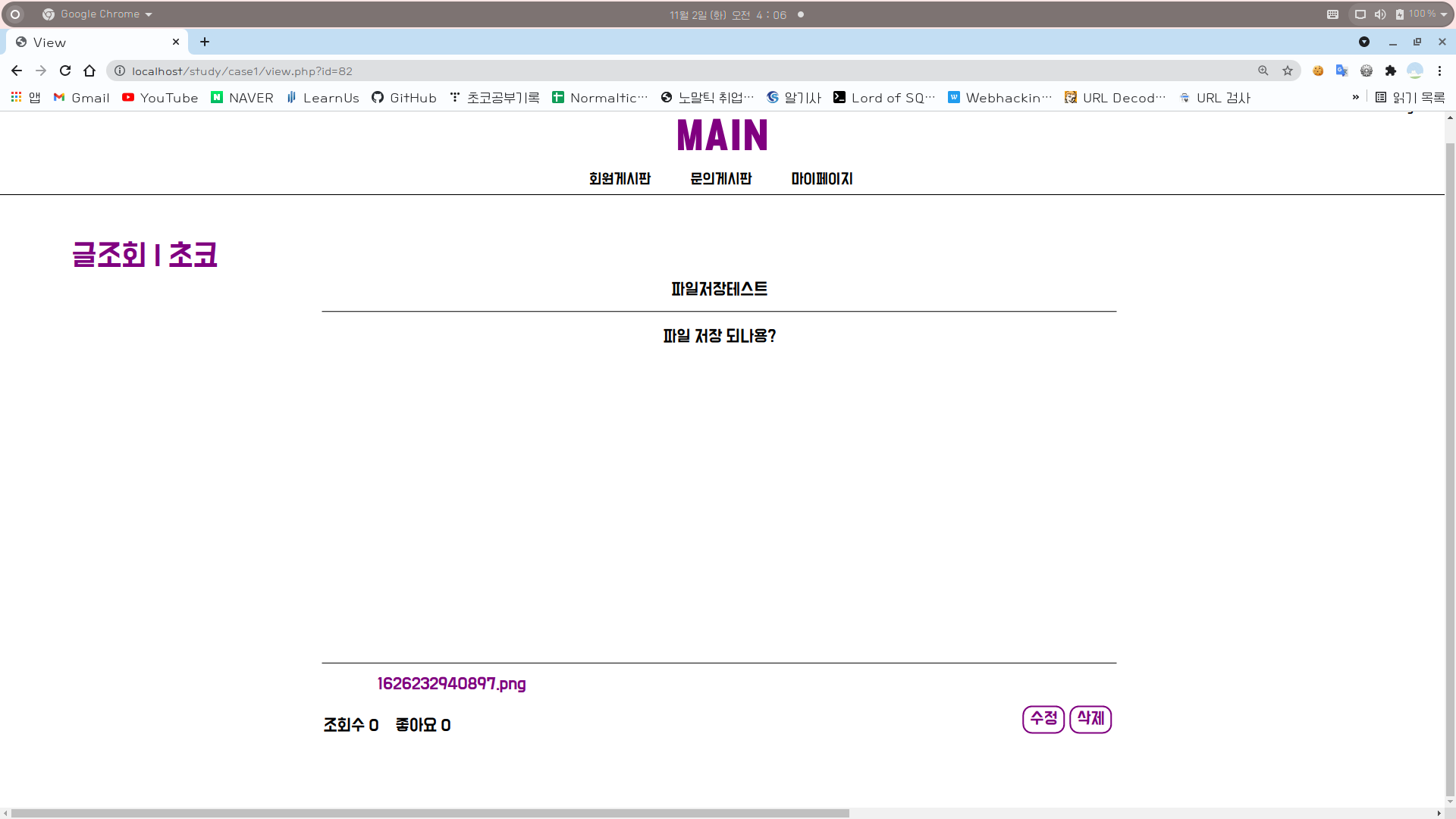 [4] 특별한 문제가 없다면, 게시글 조회 시 파일 링크를 클릭하면 해당 파일이 다운로드된다.