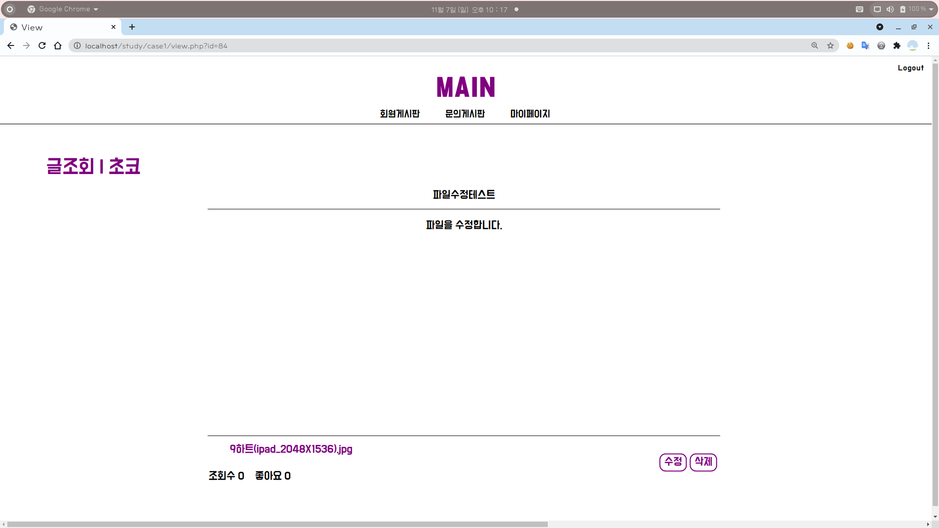 [1] 전체적인 폼의 형식은 write.php와 동일하다.