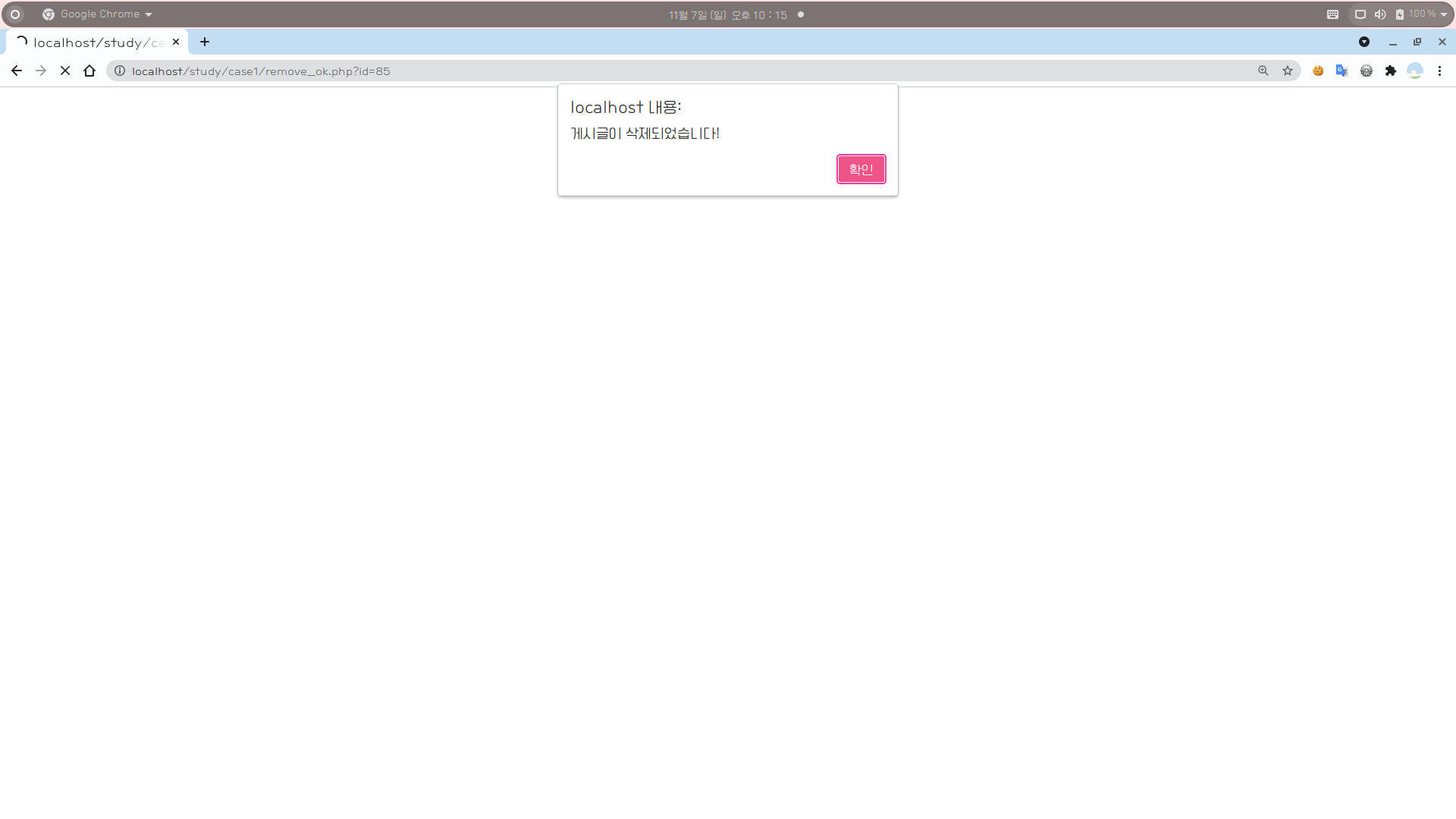 echo "<script>alert('게시글이 삭제되었습니다!');";