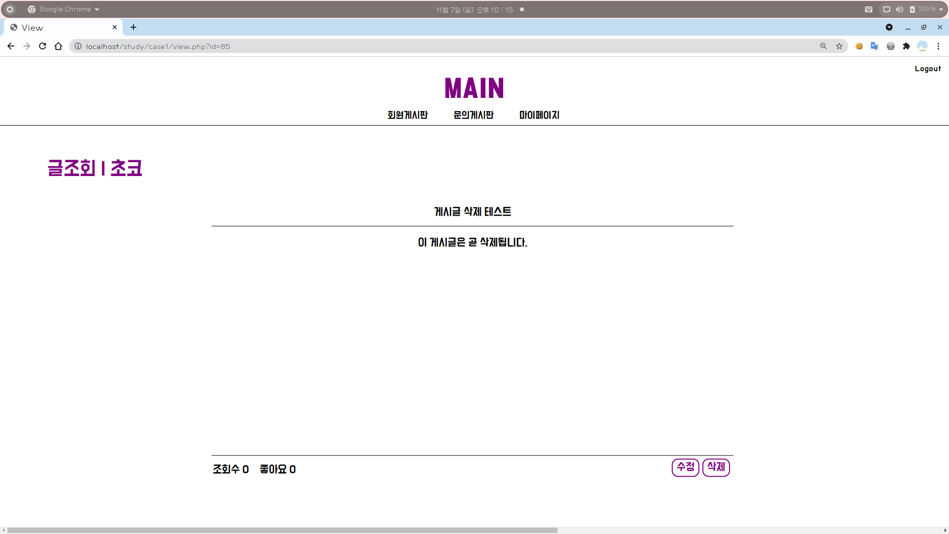 [1] 작성자가 게시글을 조회하는 경우에만 [삭제] 버튼이 나타나게끔 구현한다.