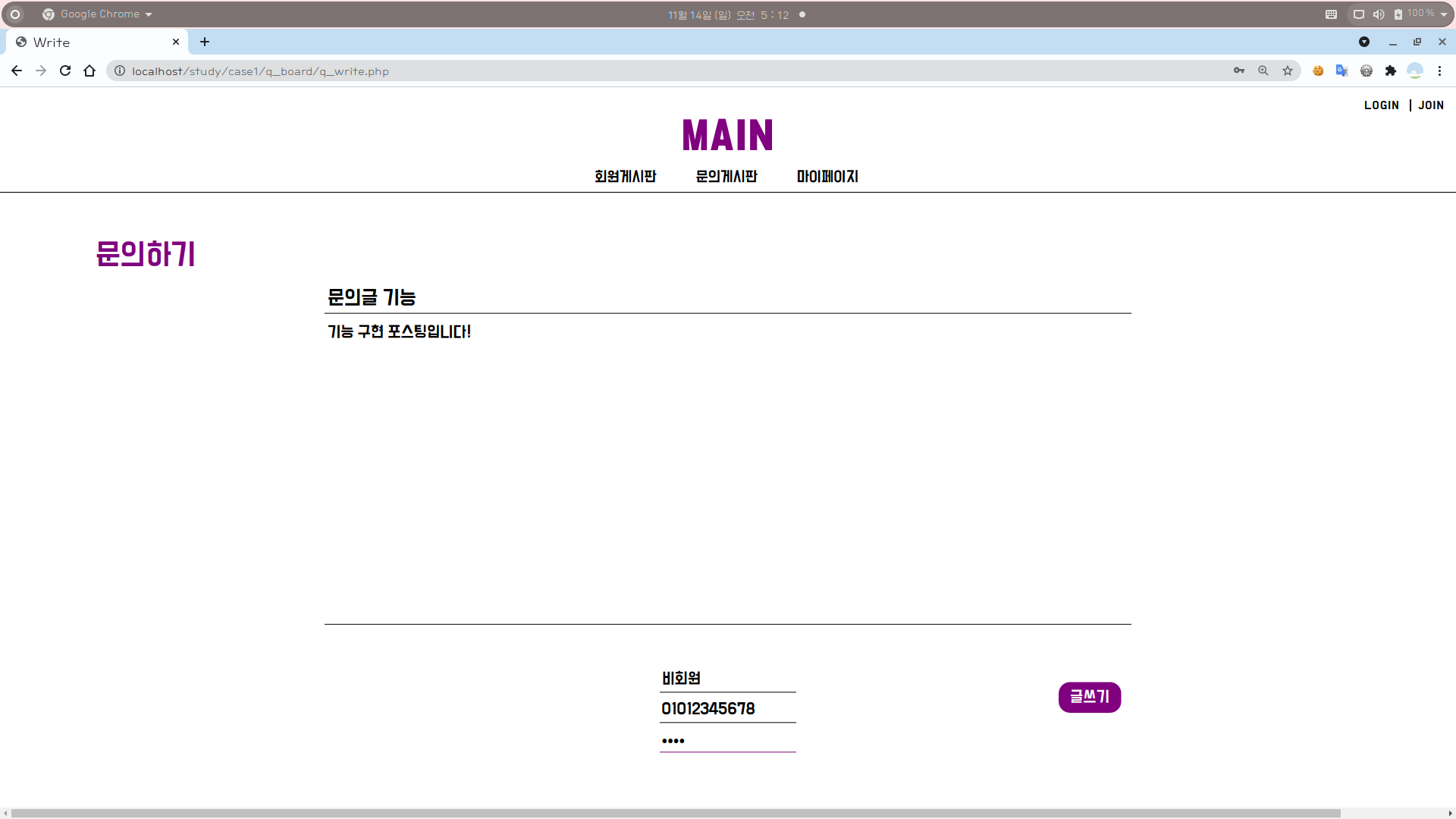 문의글 작성 기능