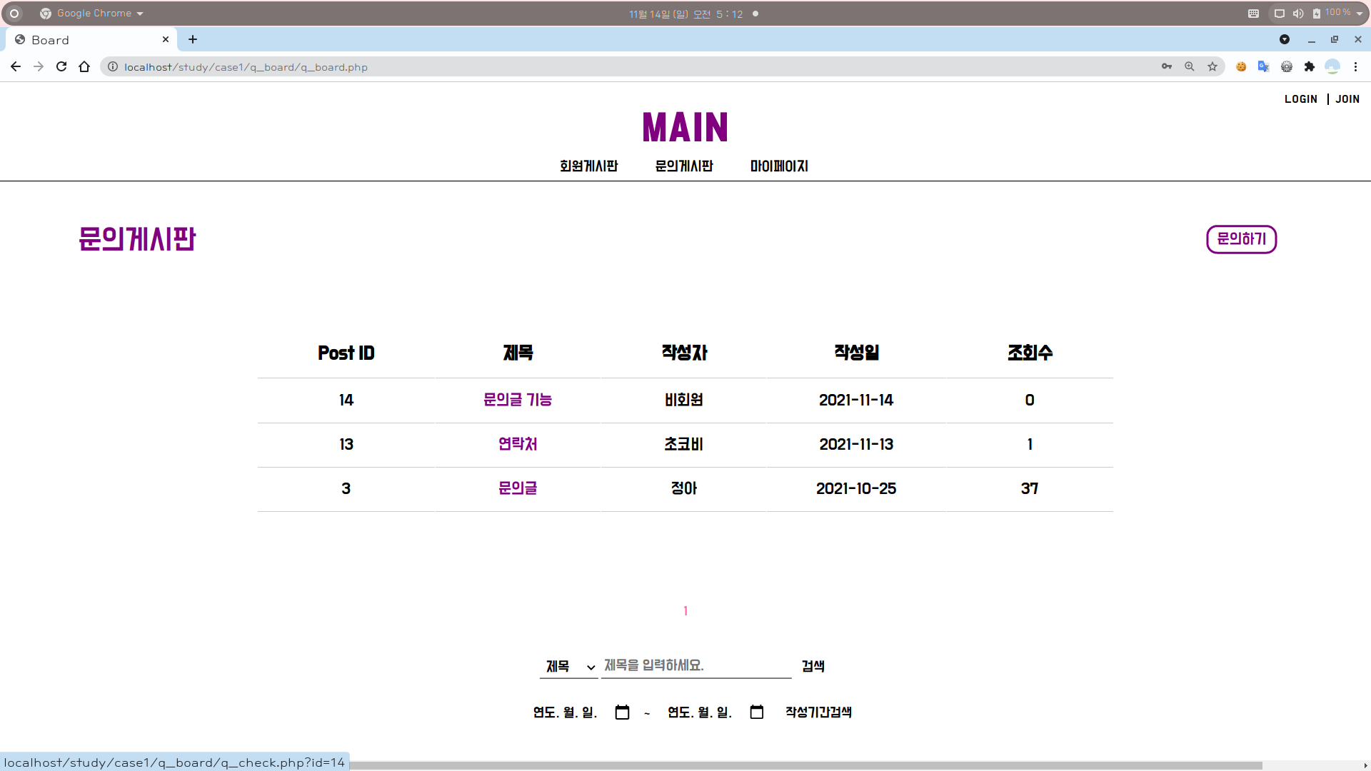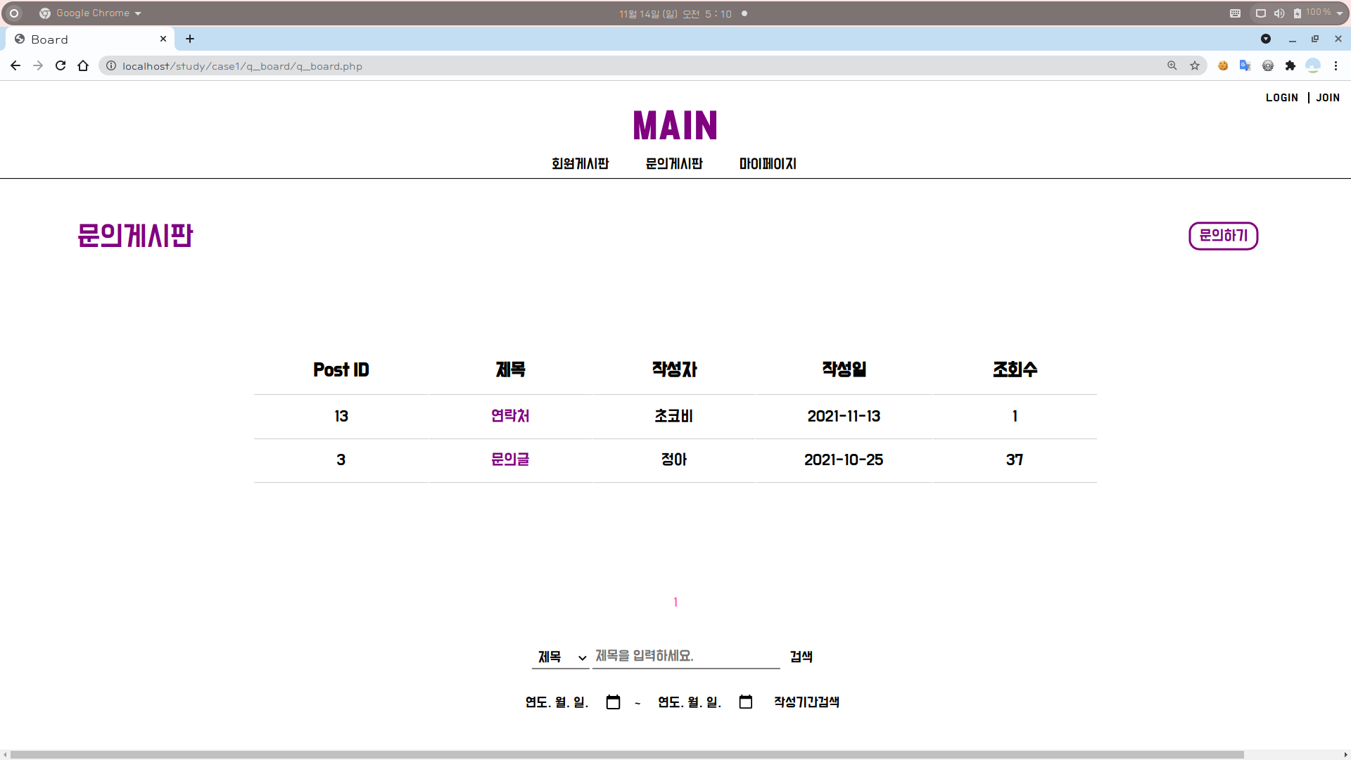 이 포스팅에서는 문의게시판의 전반적인 내용을 다룬다.