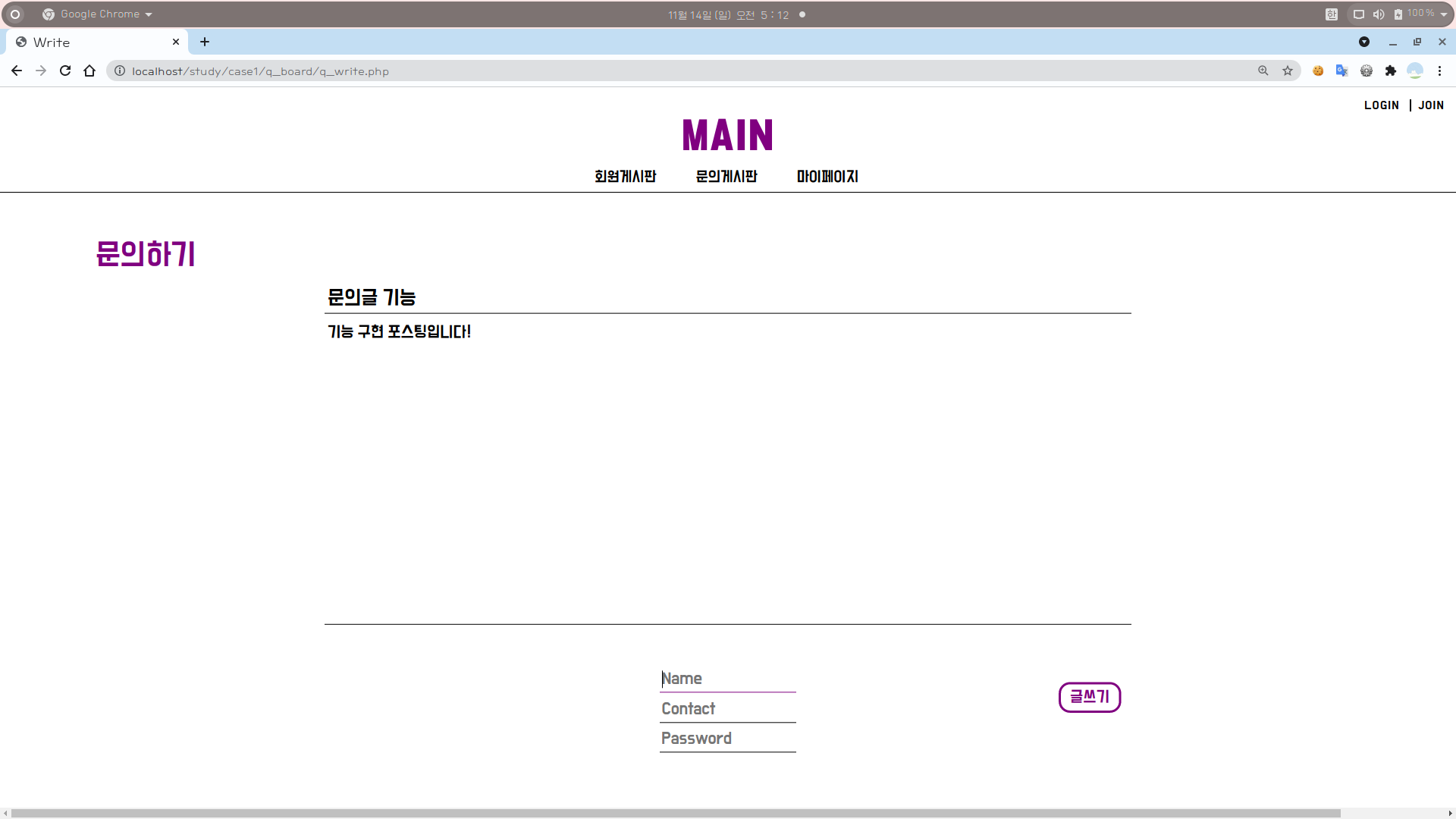 3. 다음은 문의글 작성 페이지를 출력할 q_write.php의 내용이다.