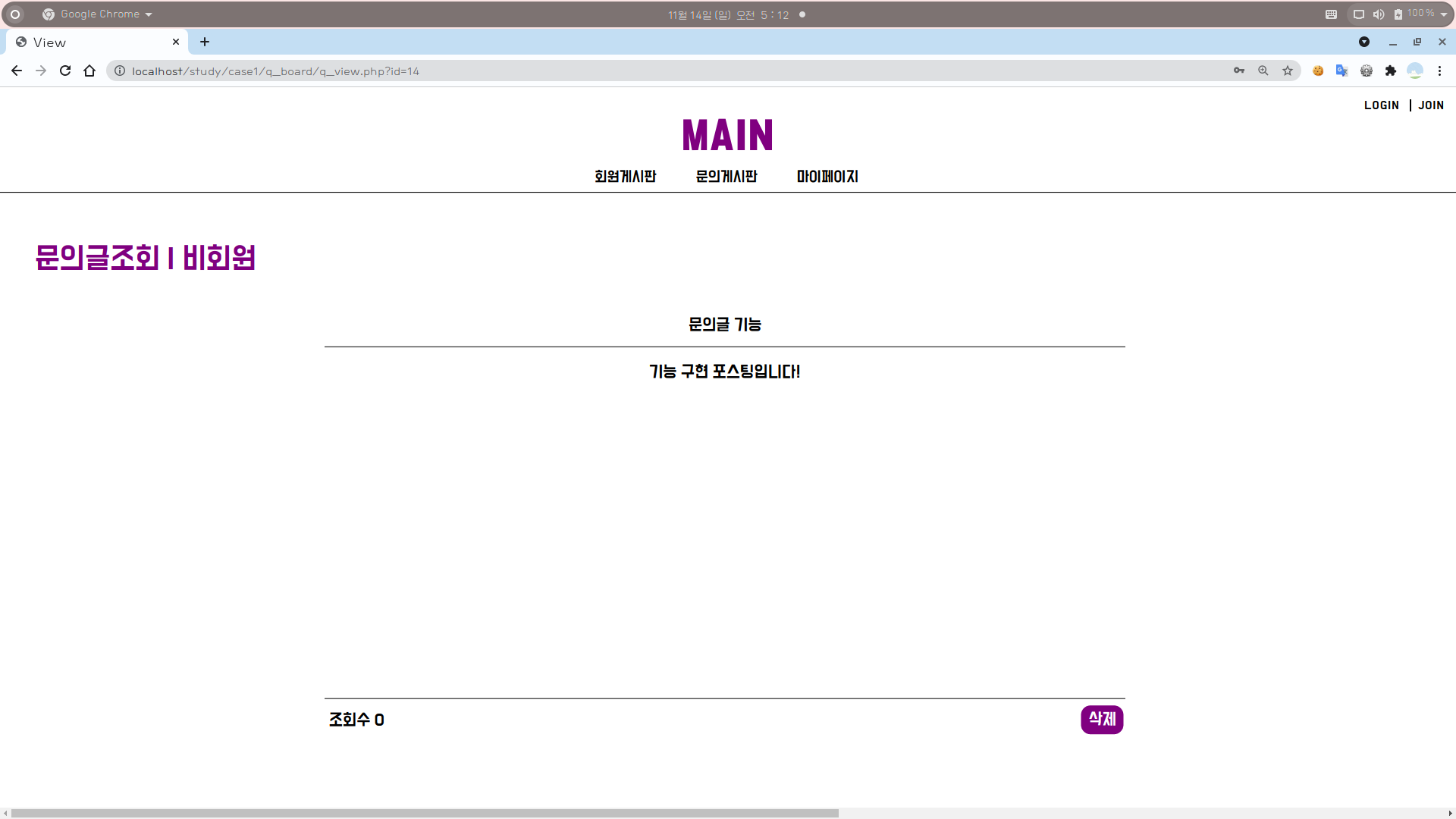 [웹개발] 비회원 문의글 작성, 조회 및 삭제 기능 본문