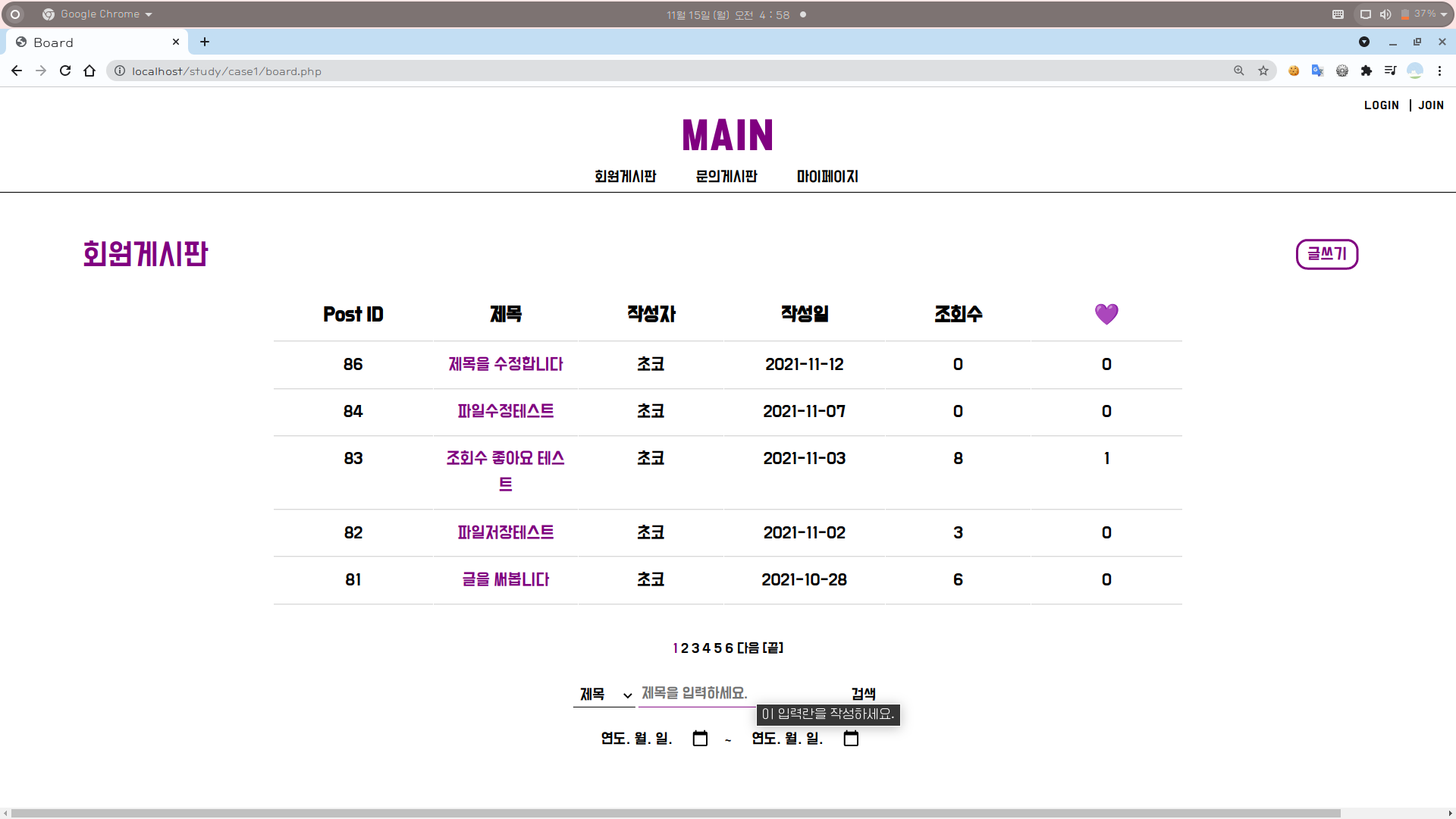 [웹개발] 게시글 검색 기능 (기간 설정 포함) 본문