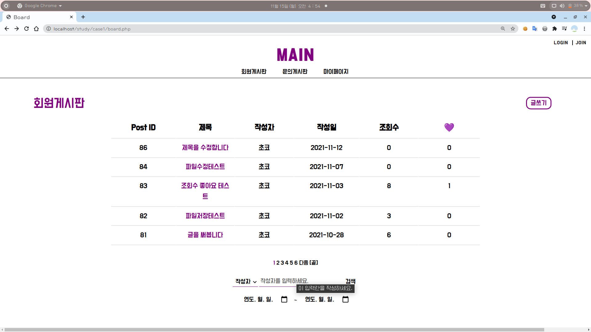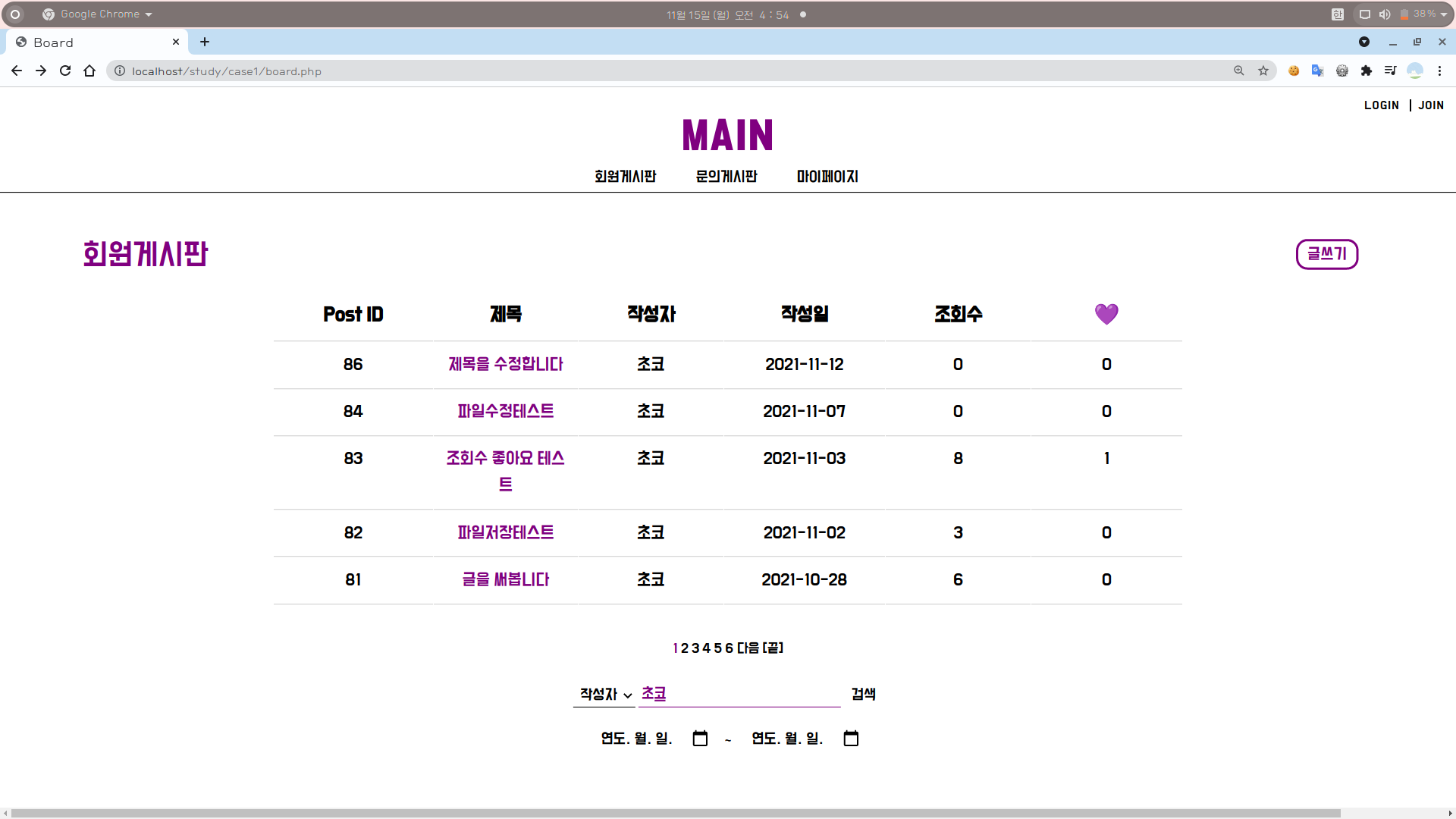 [1] board.php에 검색창을 만들어준다.