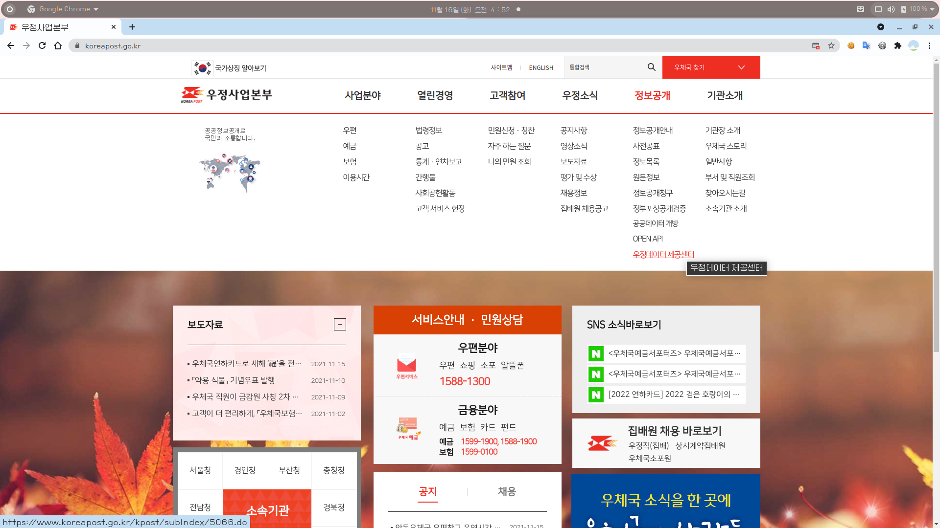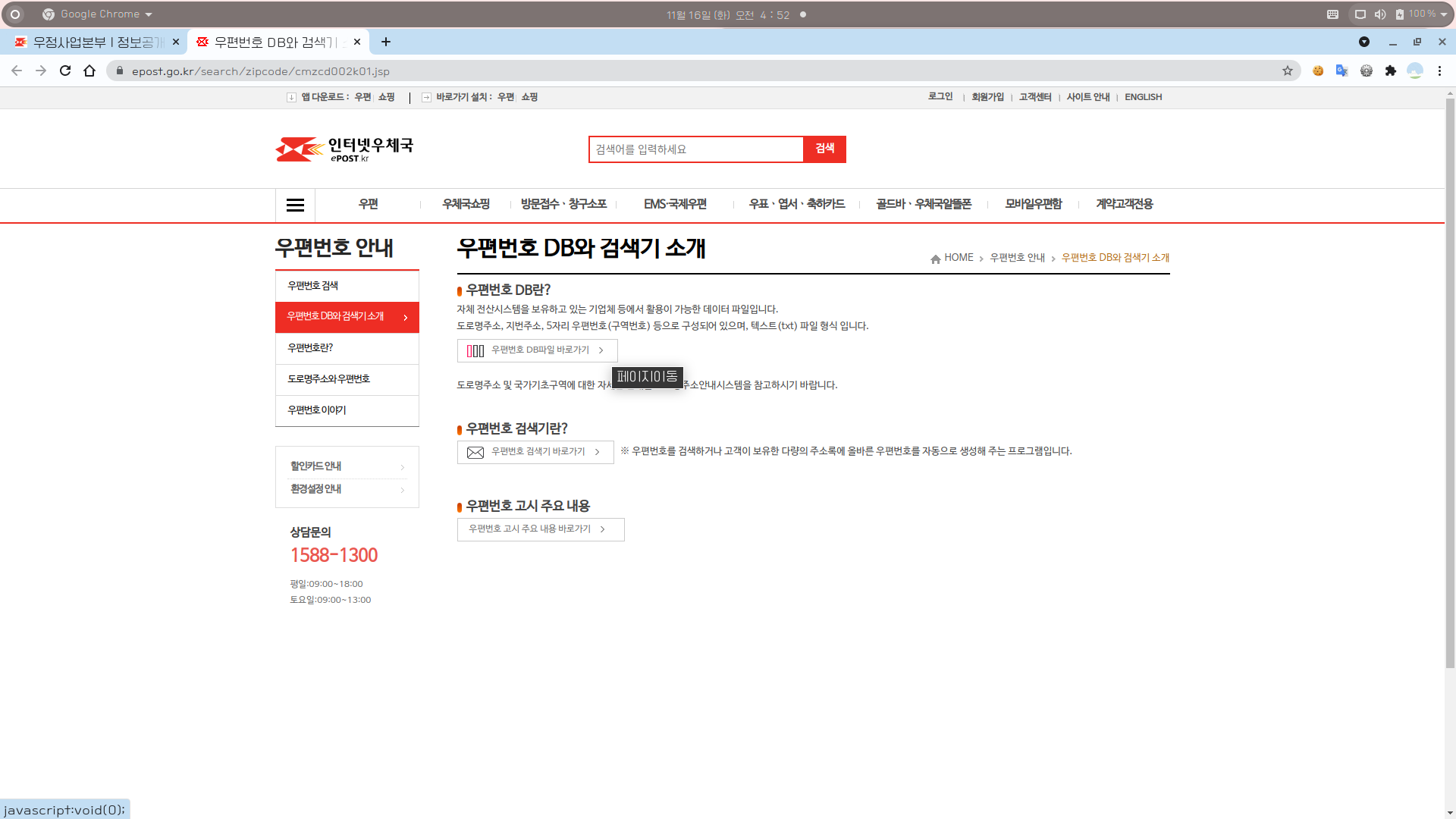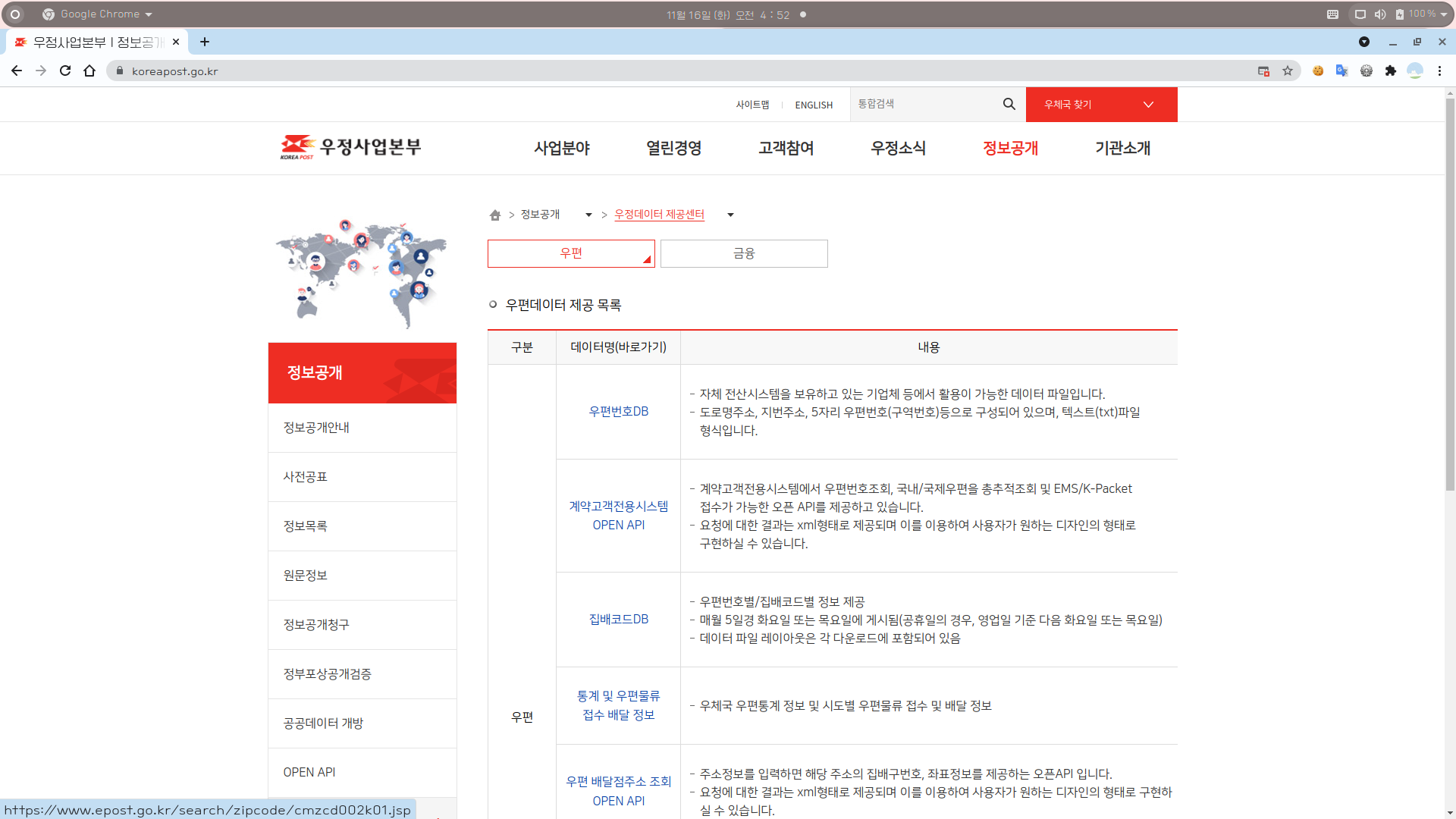 [1] 메인화면 > 정보공개 > 우정데이터 제공센터