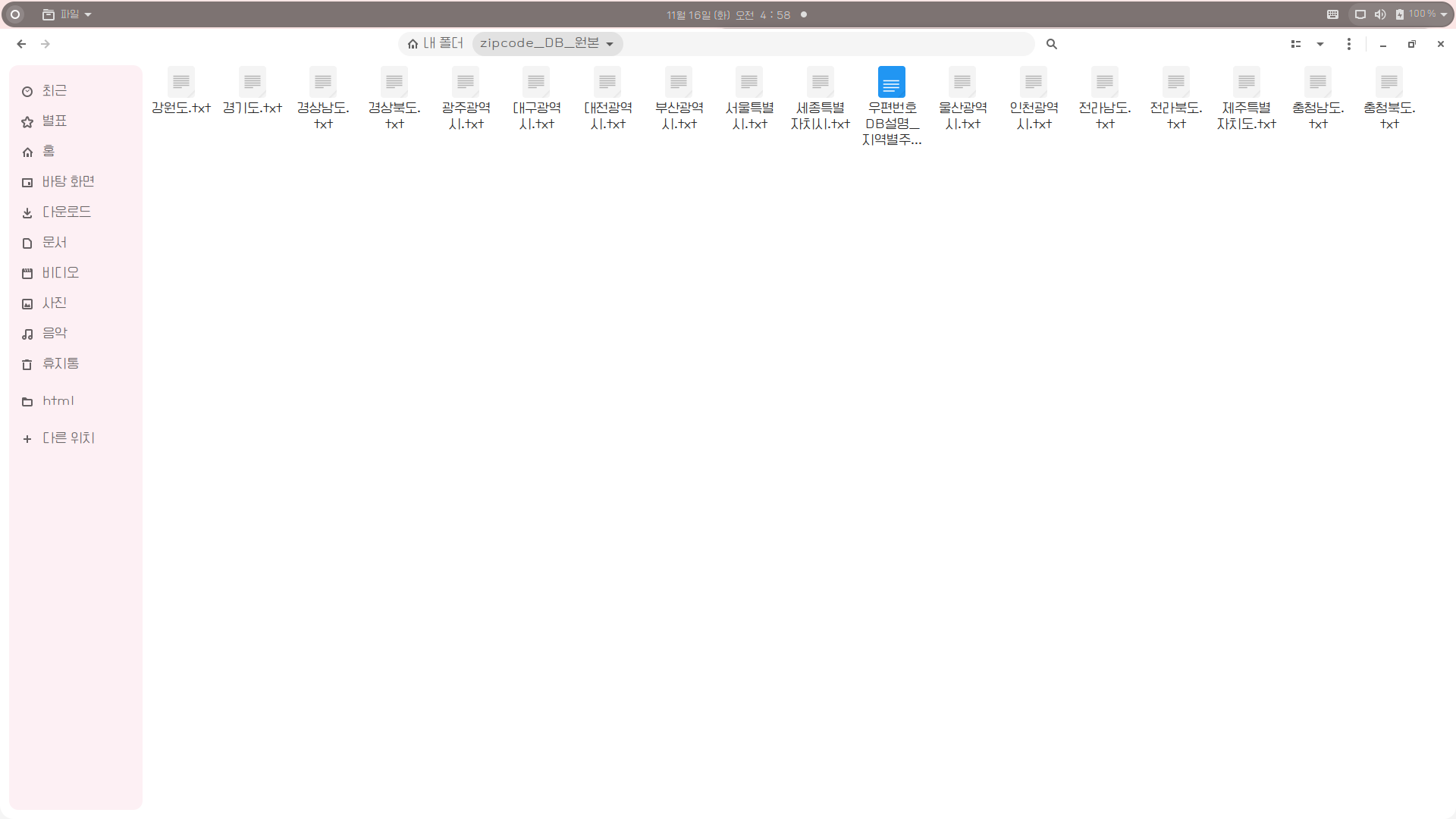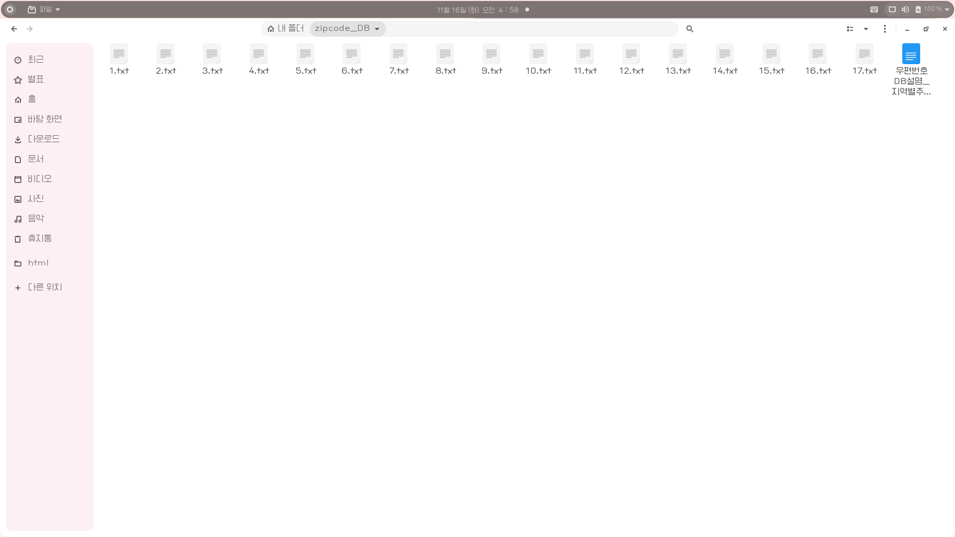 2. 다운받은 zipcode_DB의 압축을 풀고 각 파일의 이름을 숫자로 바꿔준다.