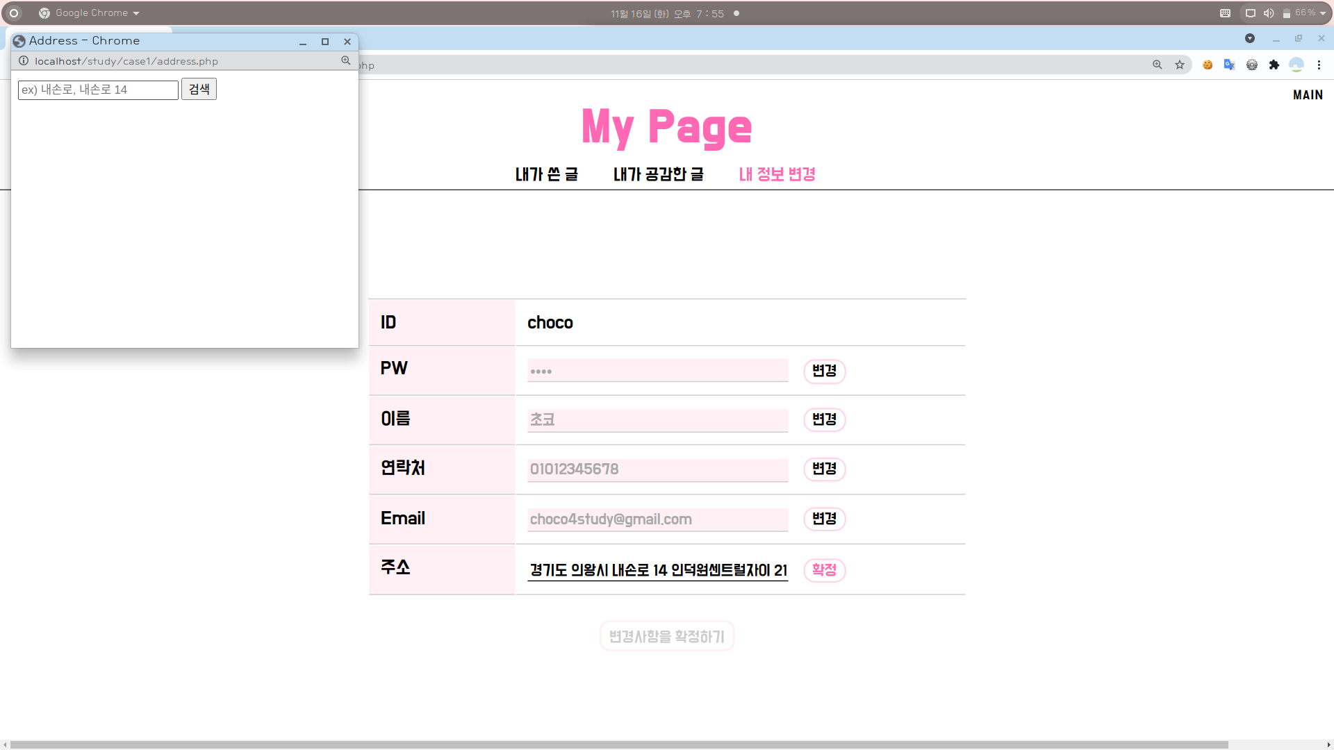 6. 위 내용들을 참고하여 [마이페이지 > 내 정보 변경 > 주소 변경] 부분도 적절히 수정해준다.