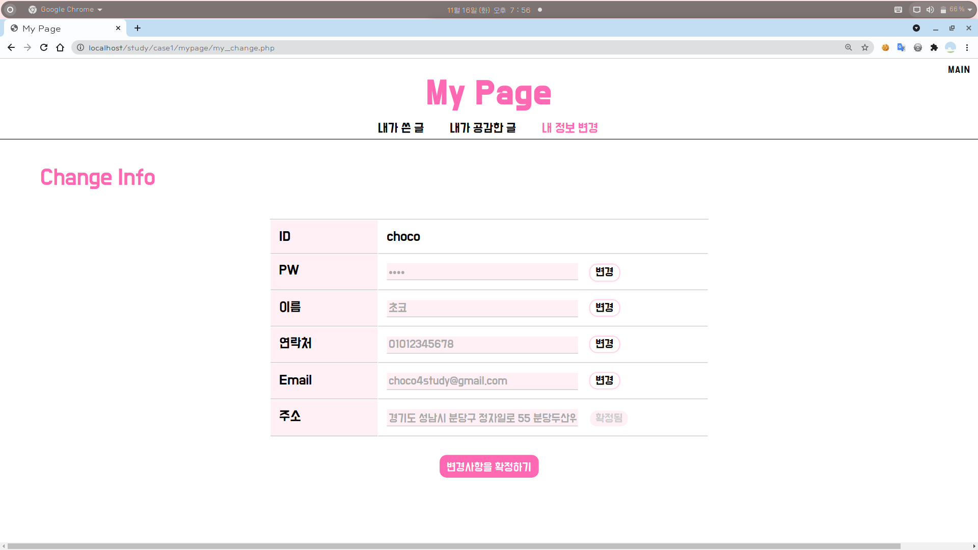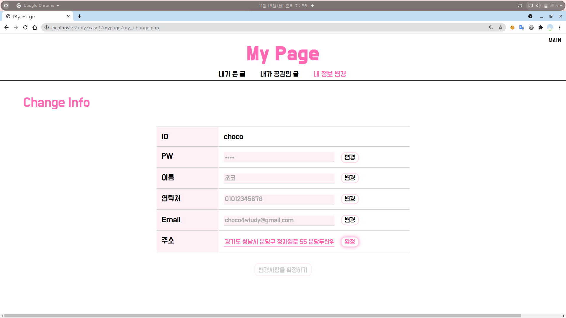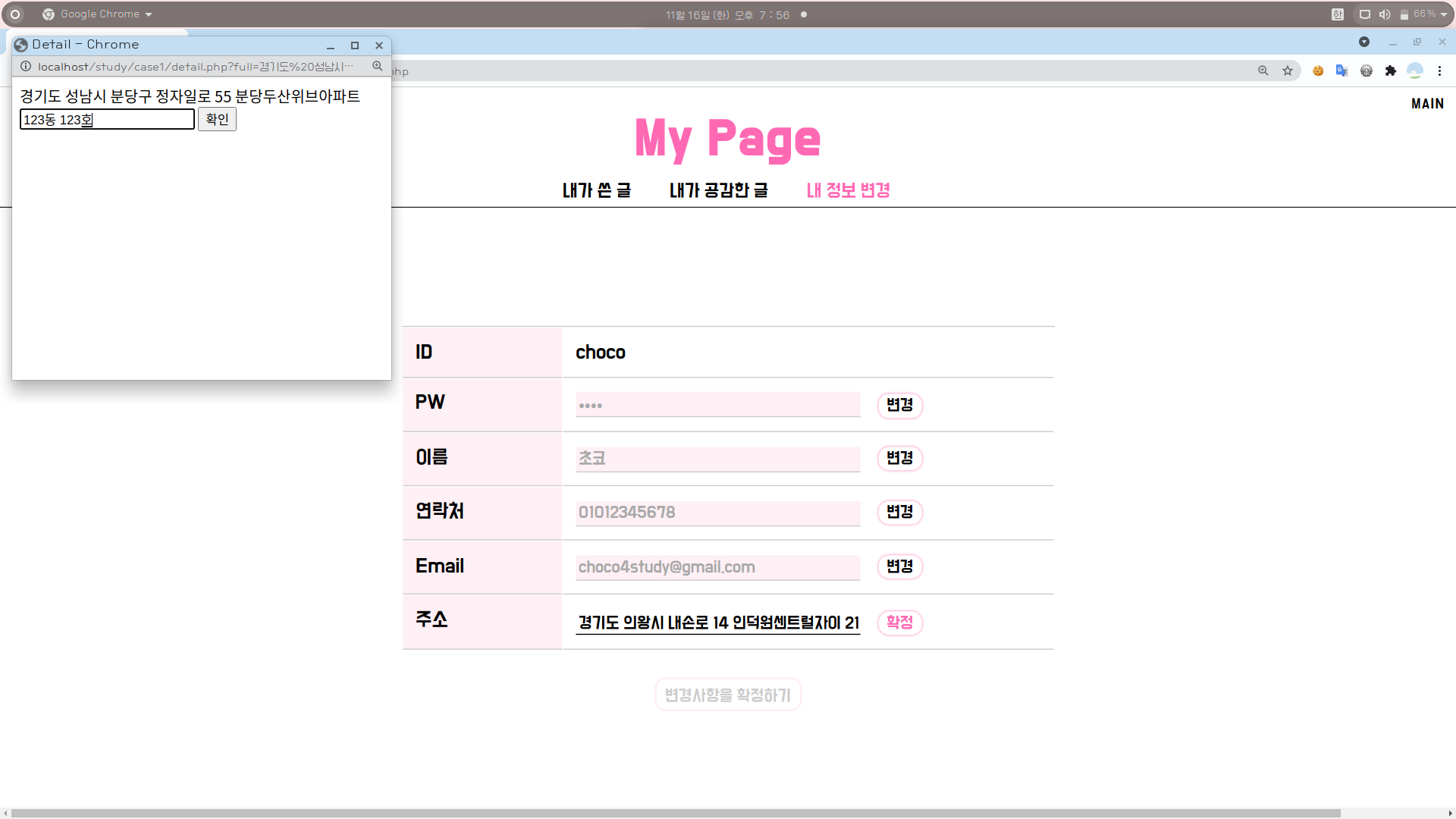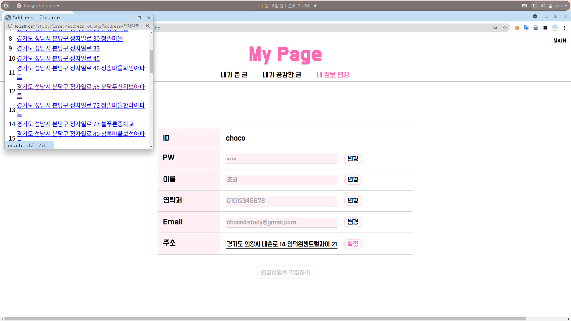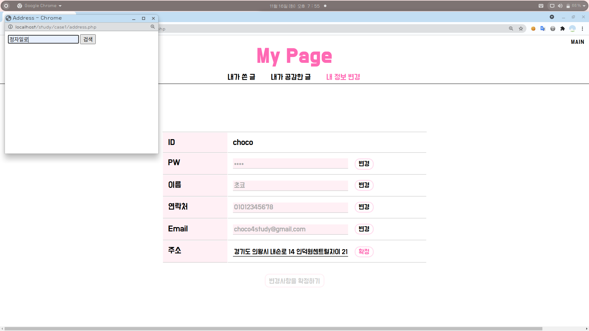 6. 위 내용들을 참고하여 [마이페이지 > 내 정보 변경 > 주소 변경] 부분도 적절히 수정해준다.