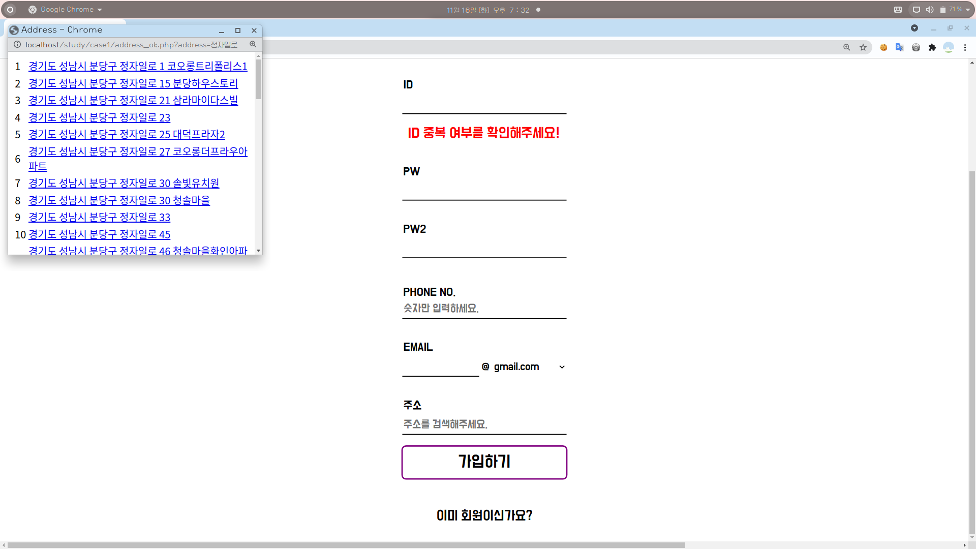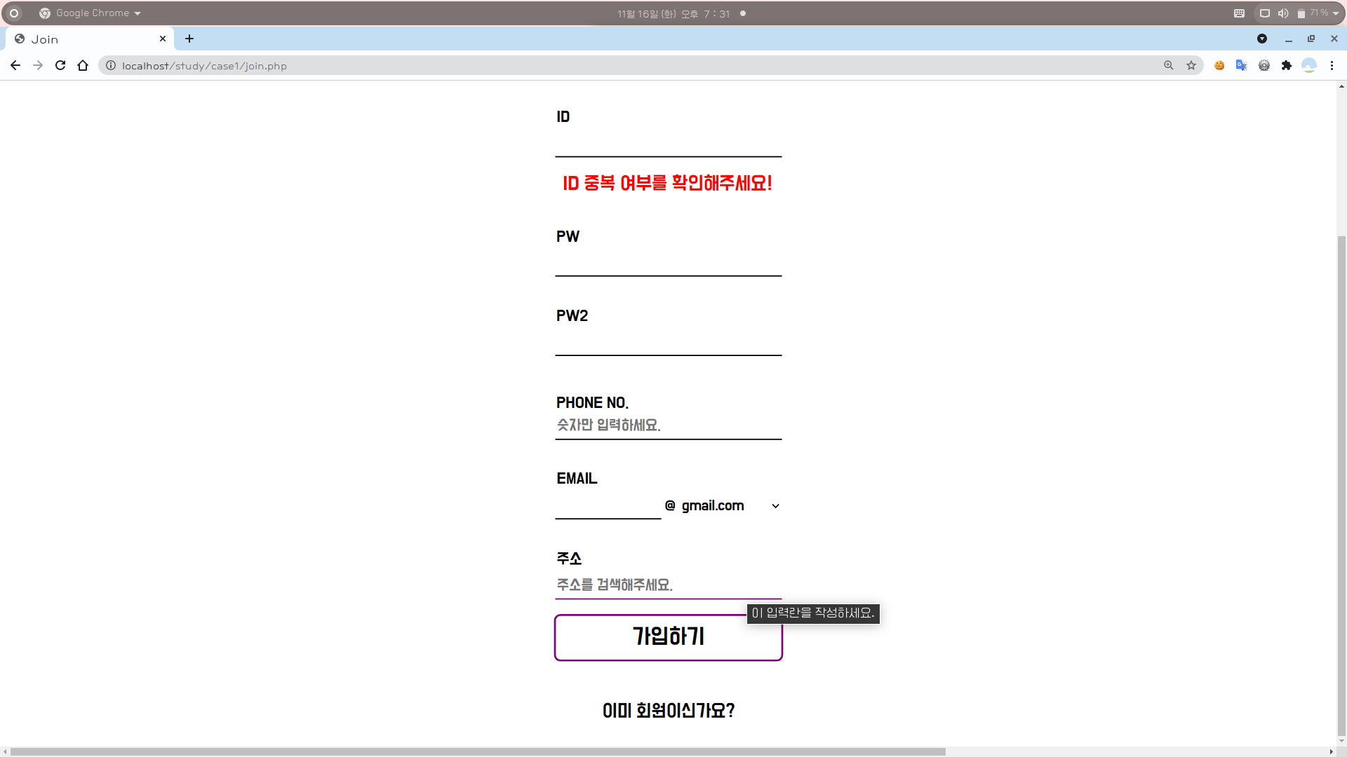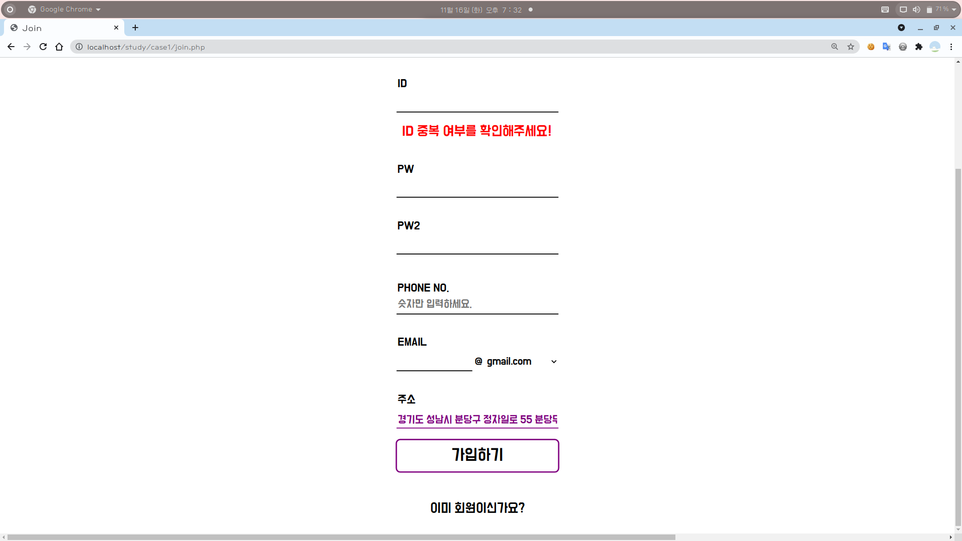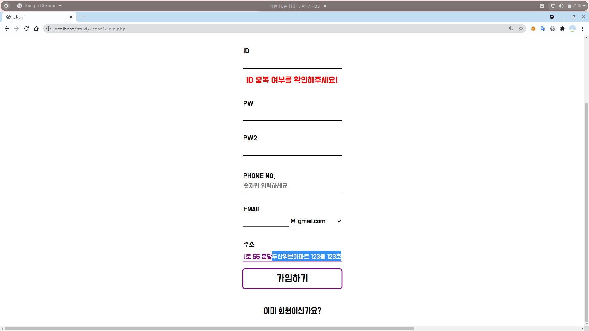 [1] join.php에 주소 기입란을 만들어준다.