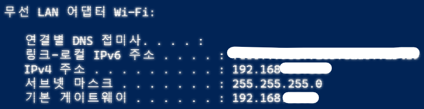 사설 IP 확인 방법