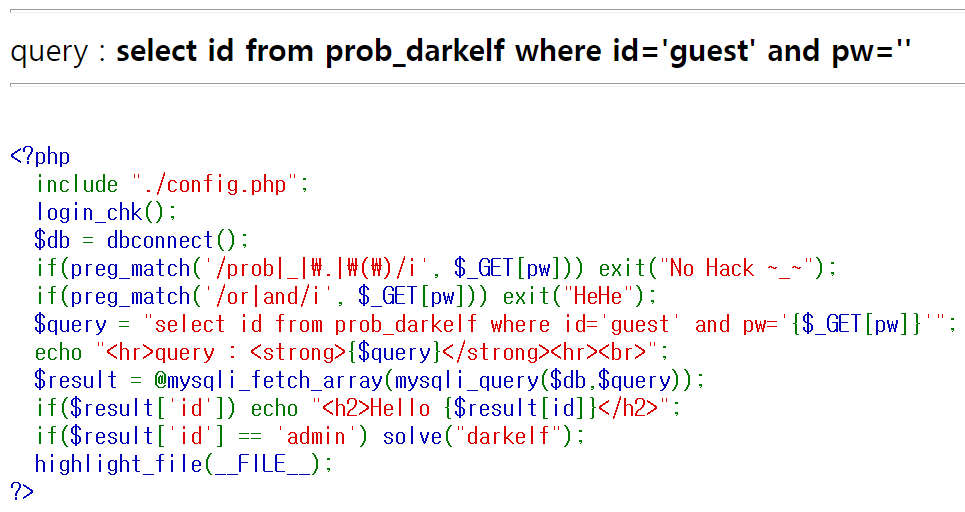 [Lord of SQL Injection] 6번 darkelf 풀이 본문