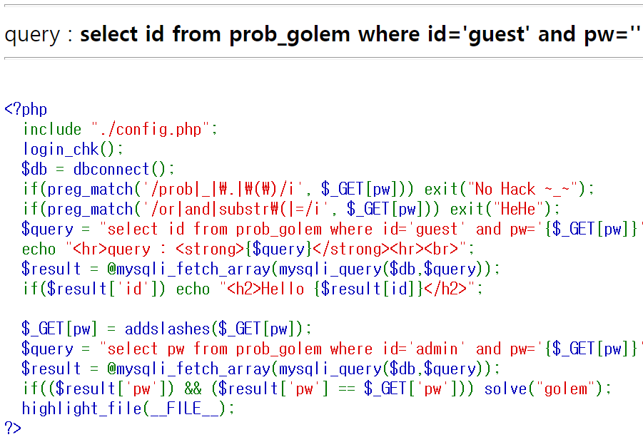 [Lord of SQL Injection] 11번 golem 풀이 본문