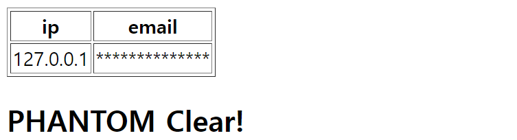 ?joinmail=choco'), (0, '[접속한 ip]', (select email from prob_phantom where no=1)) %23